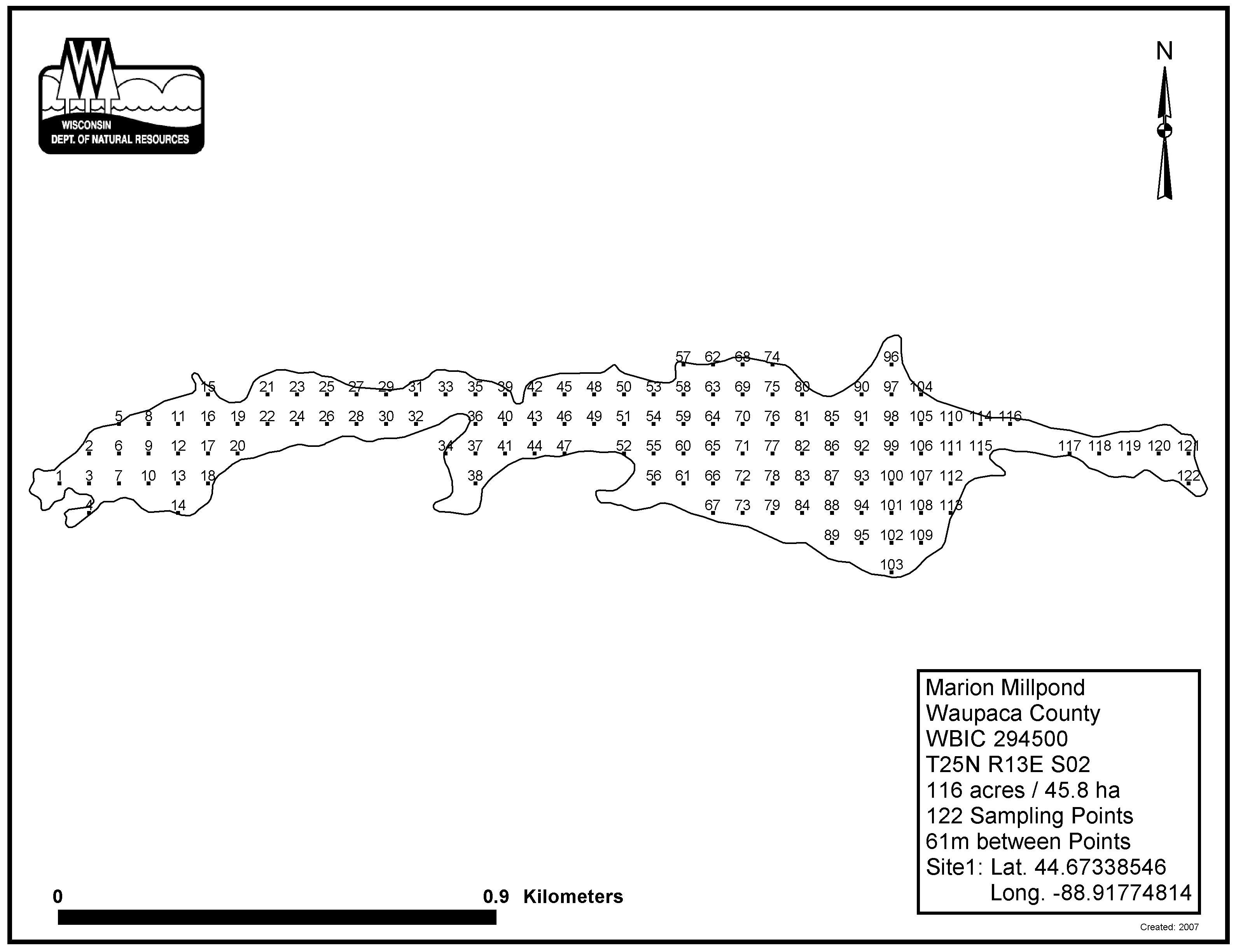 Marion Millpond, Waupaca County - Aquatic Plant Sampling Map (61 mpts)