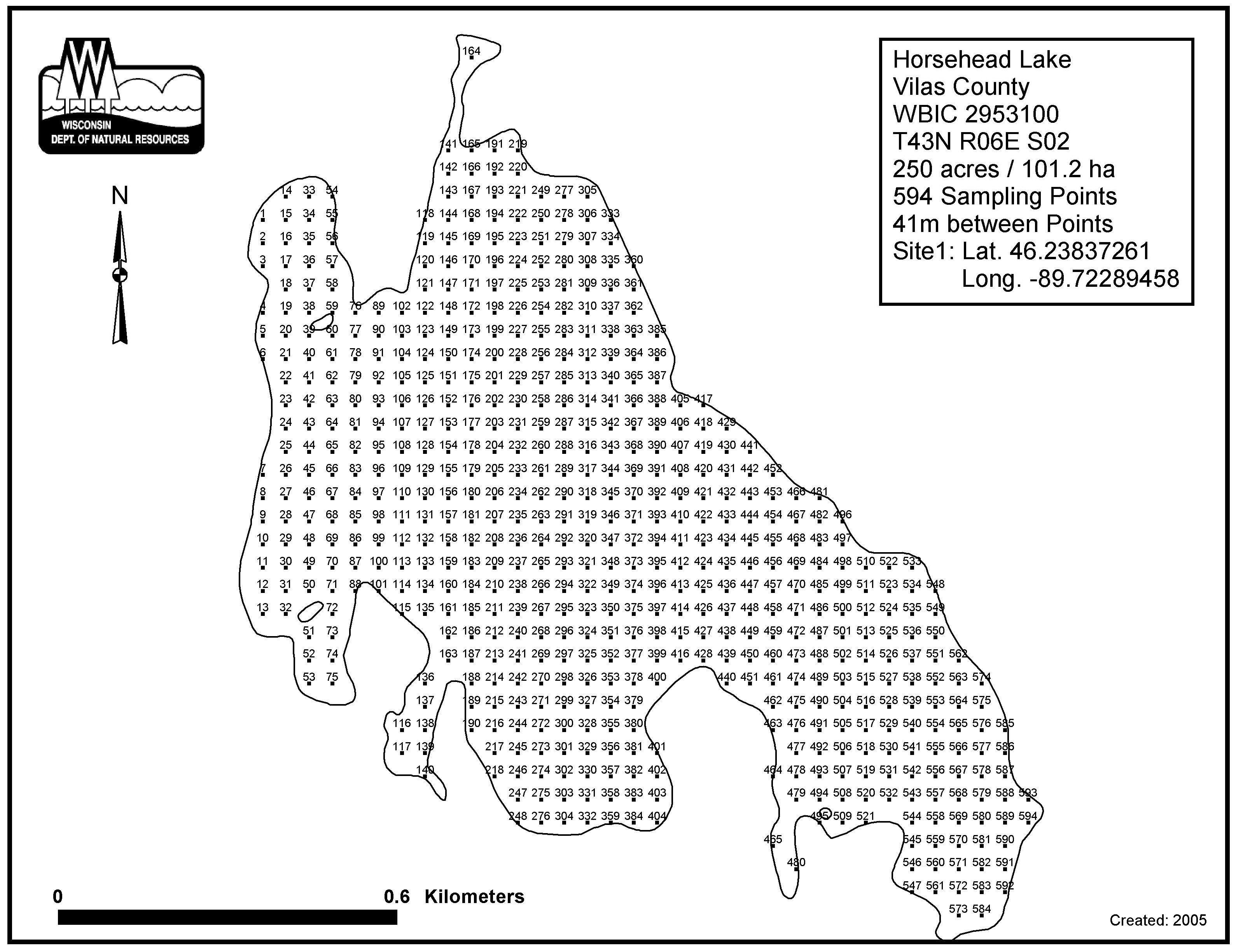 Horsehead Lake, Vilas County - Aquatic Plant Sampling Map (41 mpts)