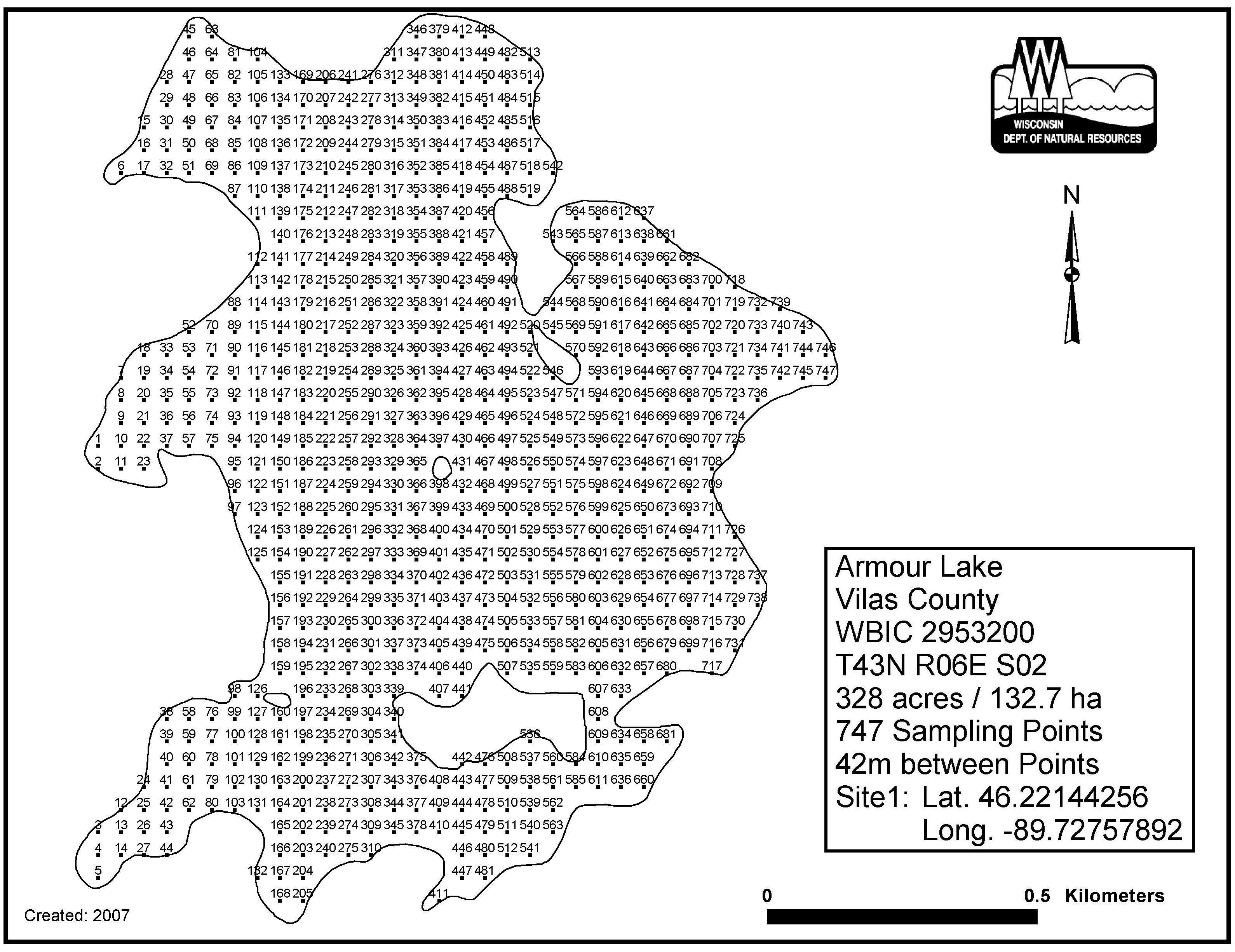 Armour Lake, Vilas County - Aquatic Plant Sampling Map (42 mpts)