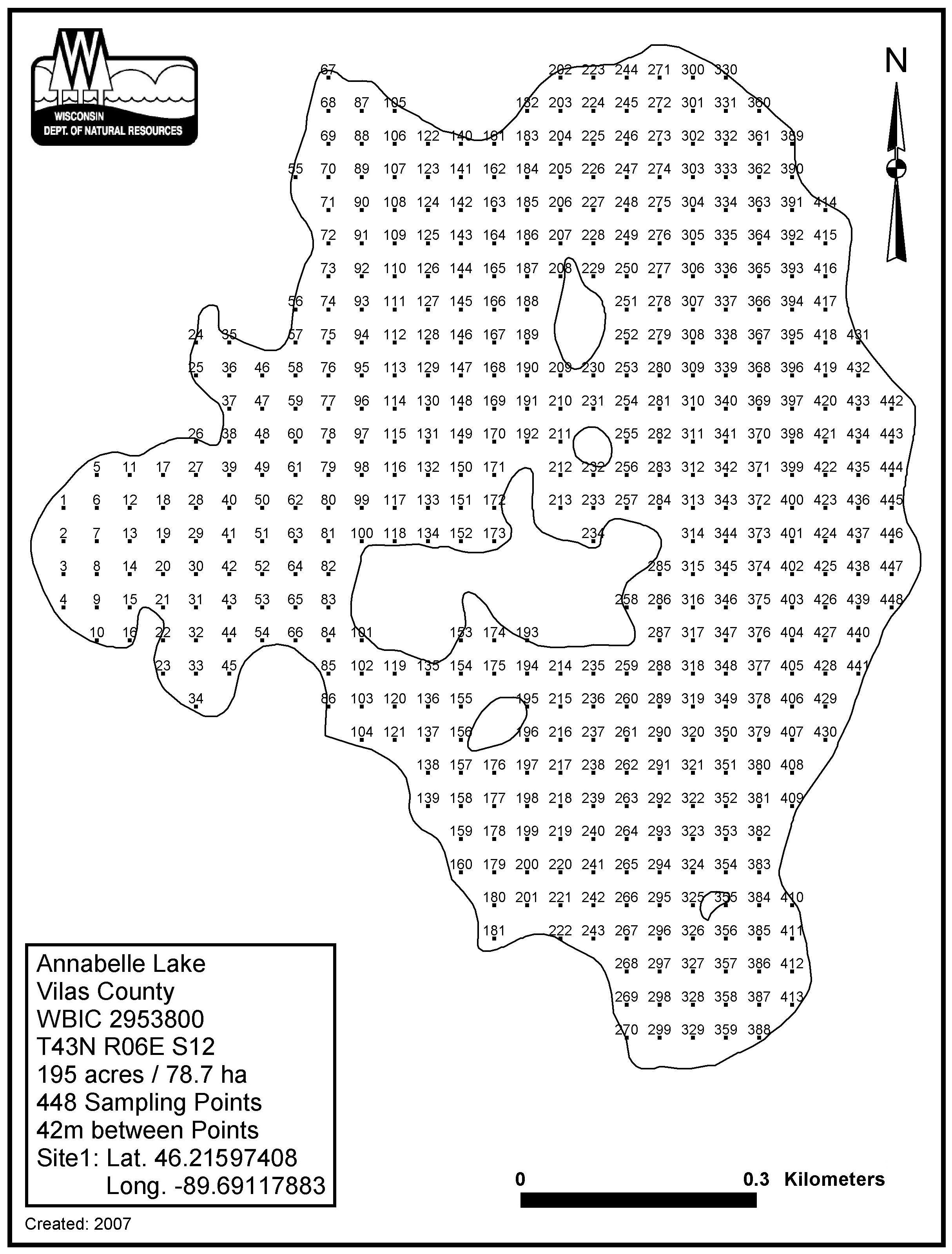 Annabelle Lake, Vilas County - Aquatic Plant Sampling Map (42 mpts)