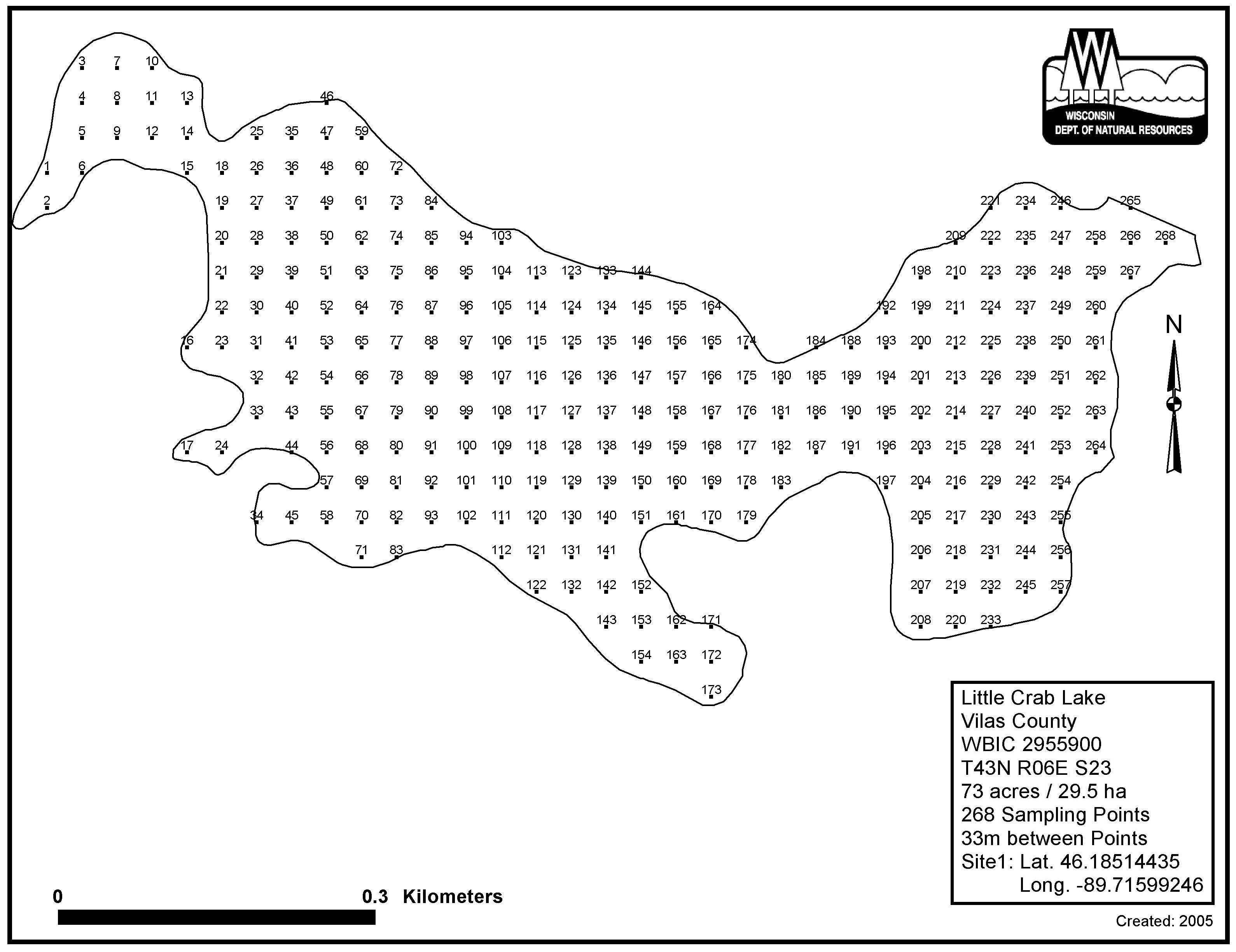 Little Crab Lake, Vilas County - Aquatic Plant Sampling Map (33 mpts)