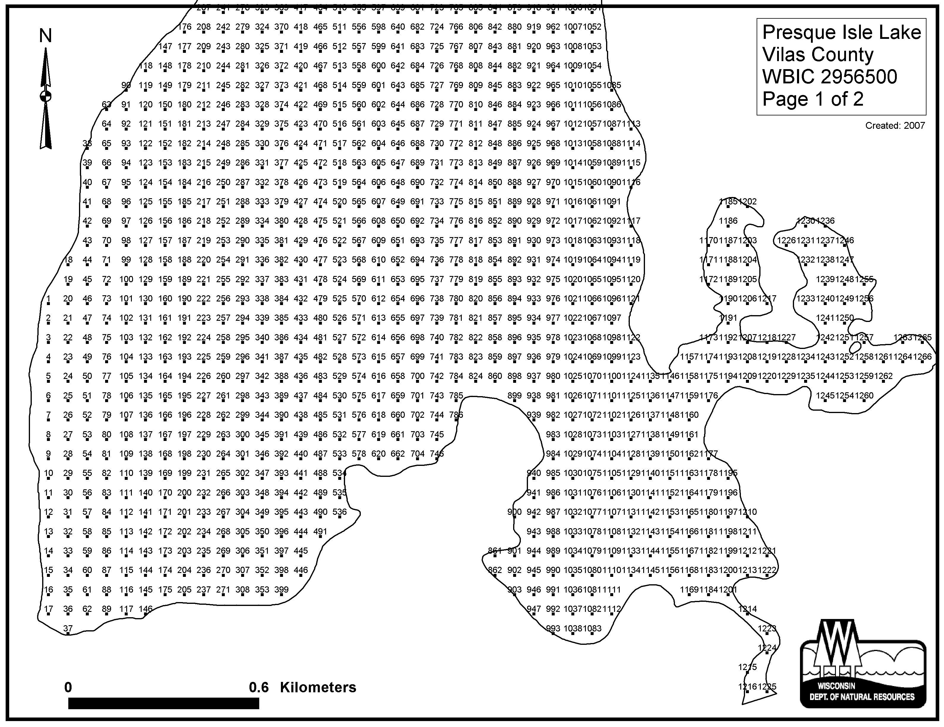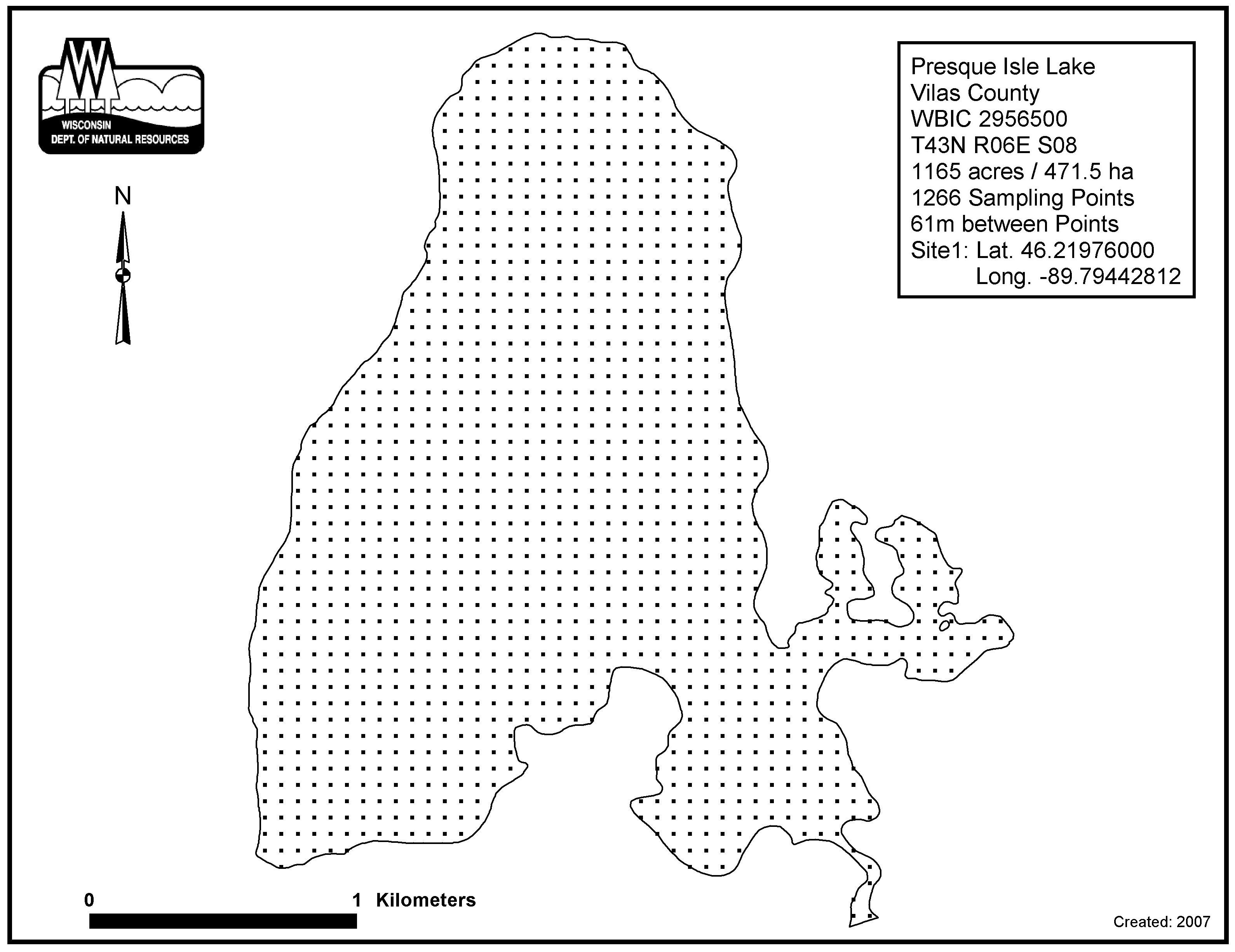 Presque Isle Lake, Vilas County - Aquatic Plant Sampling Map (1)(61 mpts)
