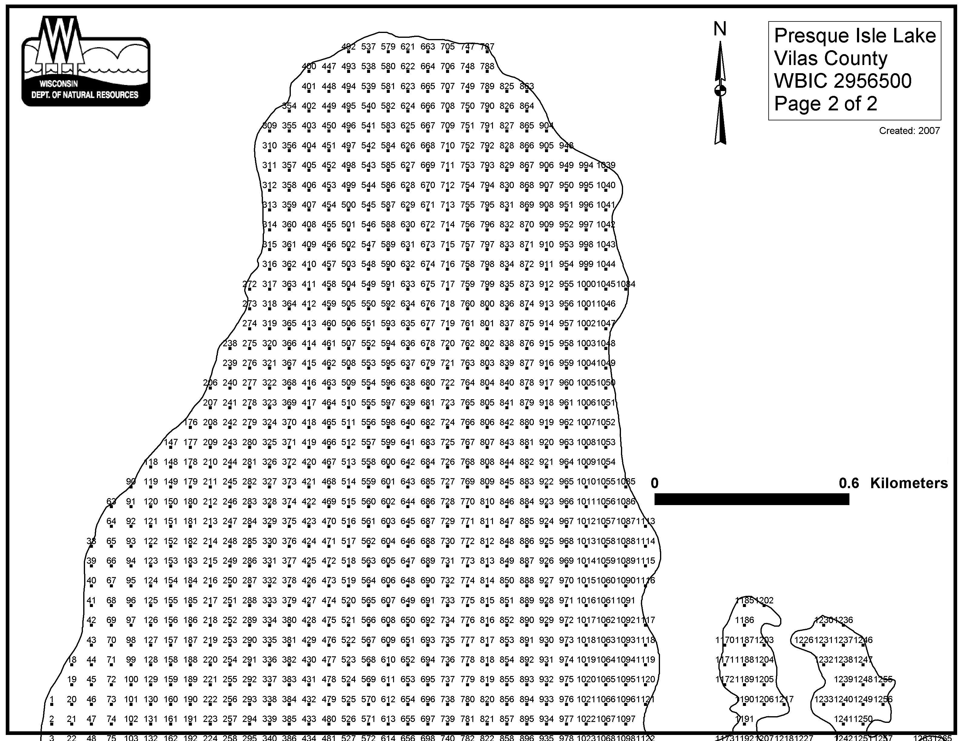 Presque Isle Lake, Vilas County - Aquatic Plant Sampling Map (2)(61 mpts)