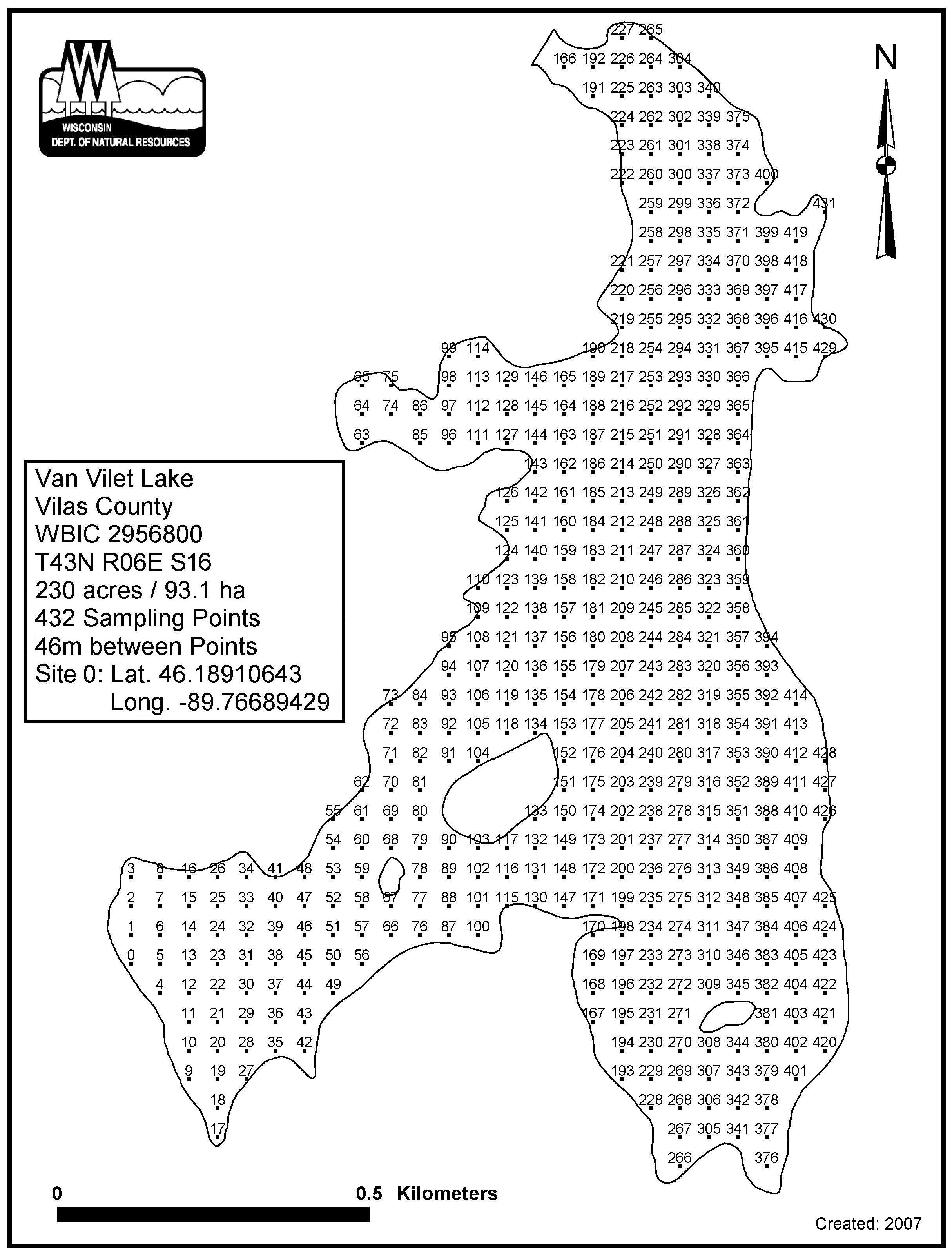 Van Vliet Lake, Vilas County - Aquatic Plant Sampling Map (46 mpts)