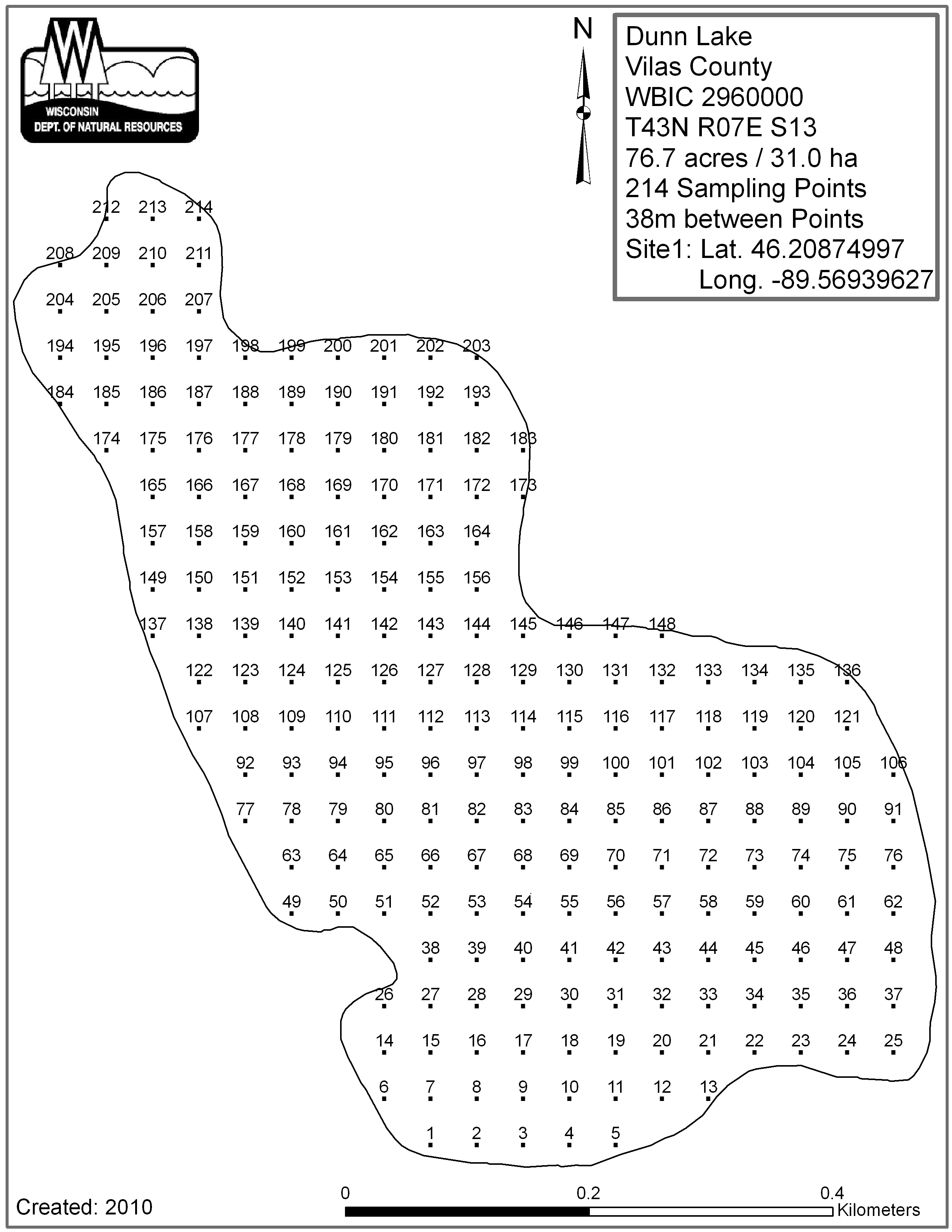 Dunn Lake, Vilas County - Aquatic Plant Sampling Map (38 mpts)