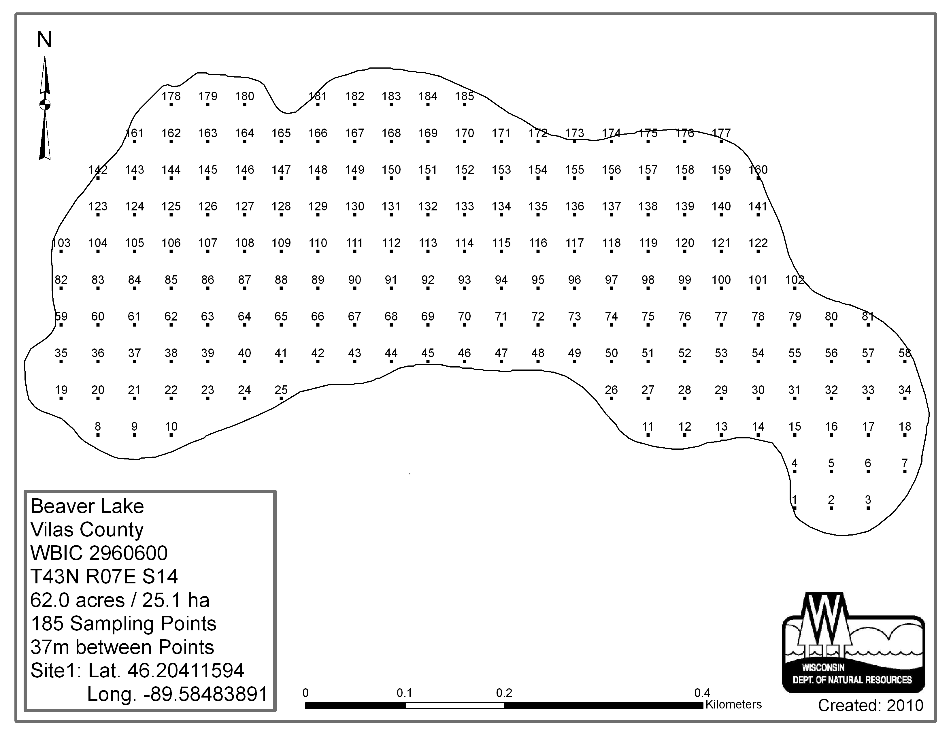 Beaver Lake, Vilas County - Aquatic Plant Sampling Map (37 mpts)