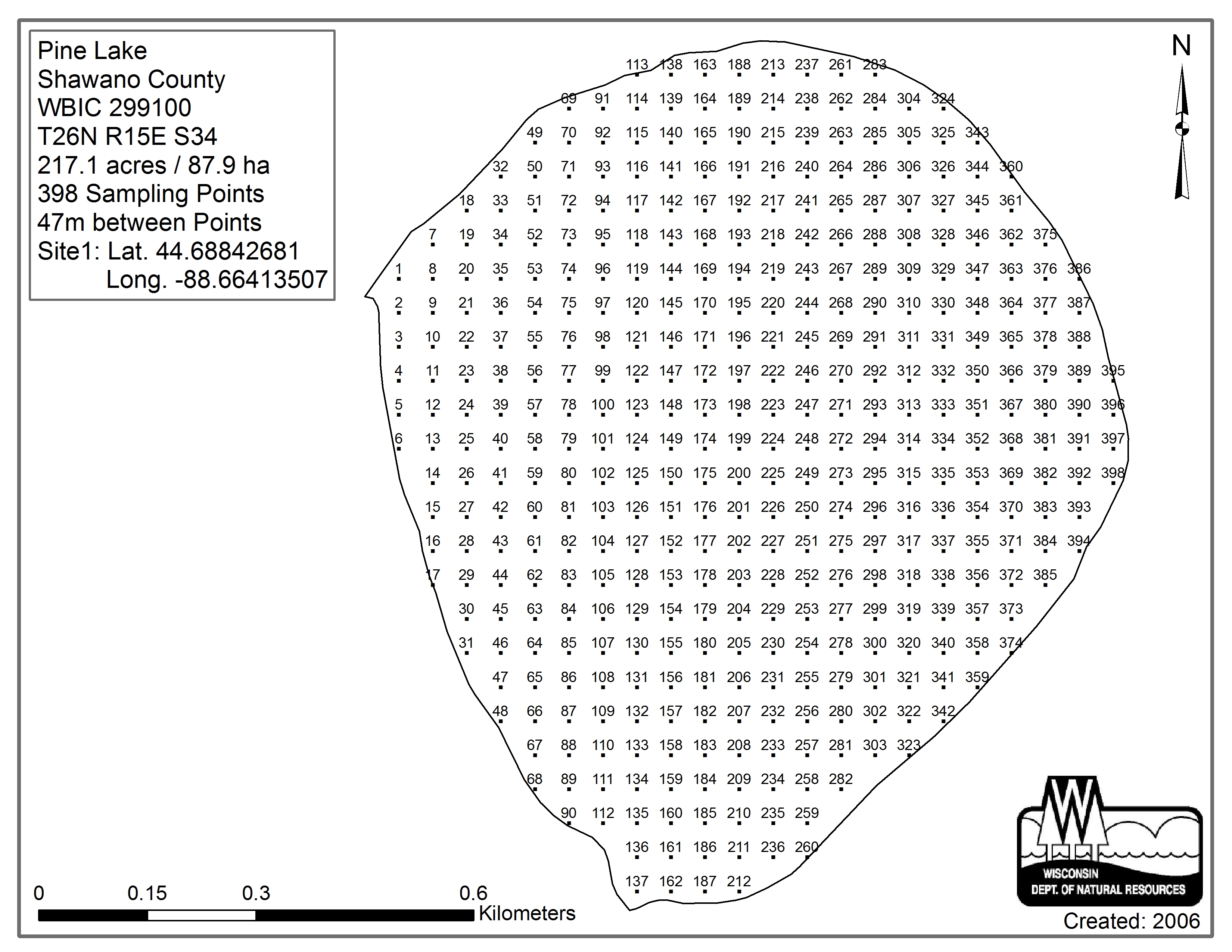 Pine Lake, Shawano County - Aquatic Plant Sampling Map (47 mpts)