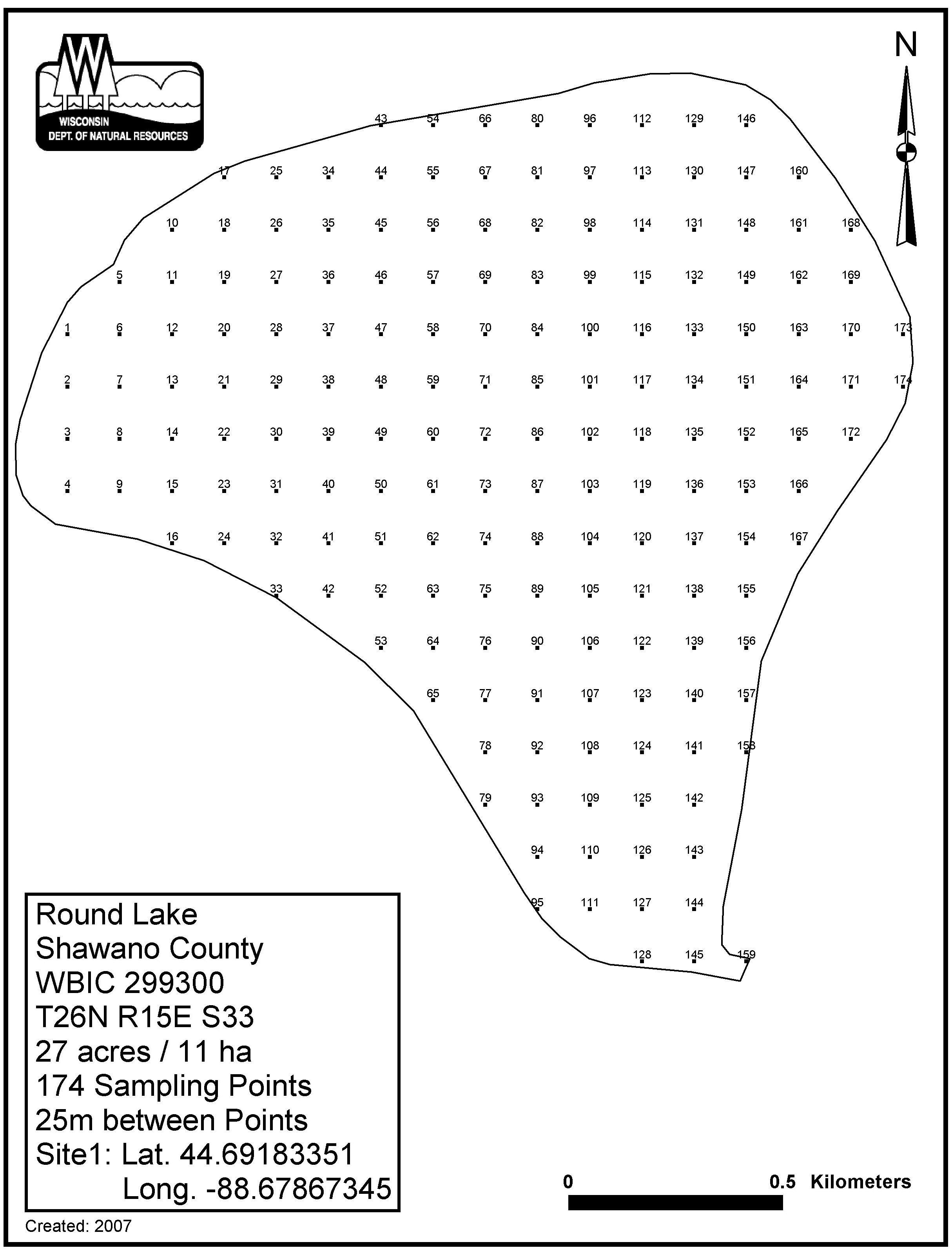 Round Lake, Shawano County - Aquatic Plant Sampling Map (25 mpts)
