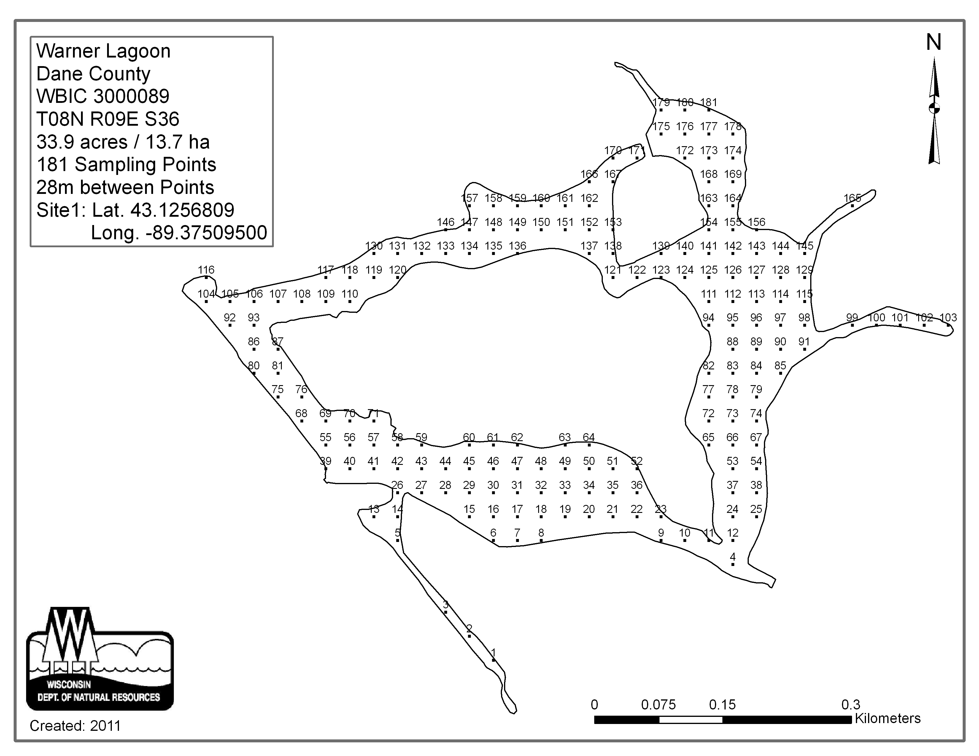 Unnamed Lake, Dane County (3000089) - Aquatic Plant Sampling Map (28 mpts)