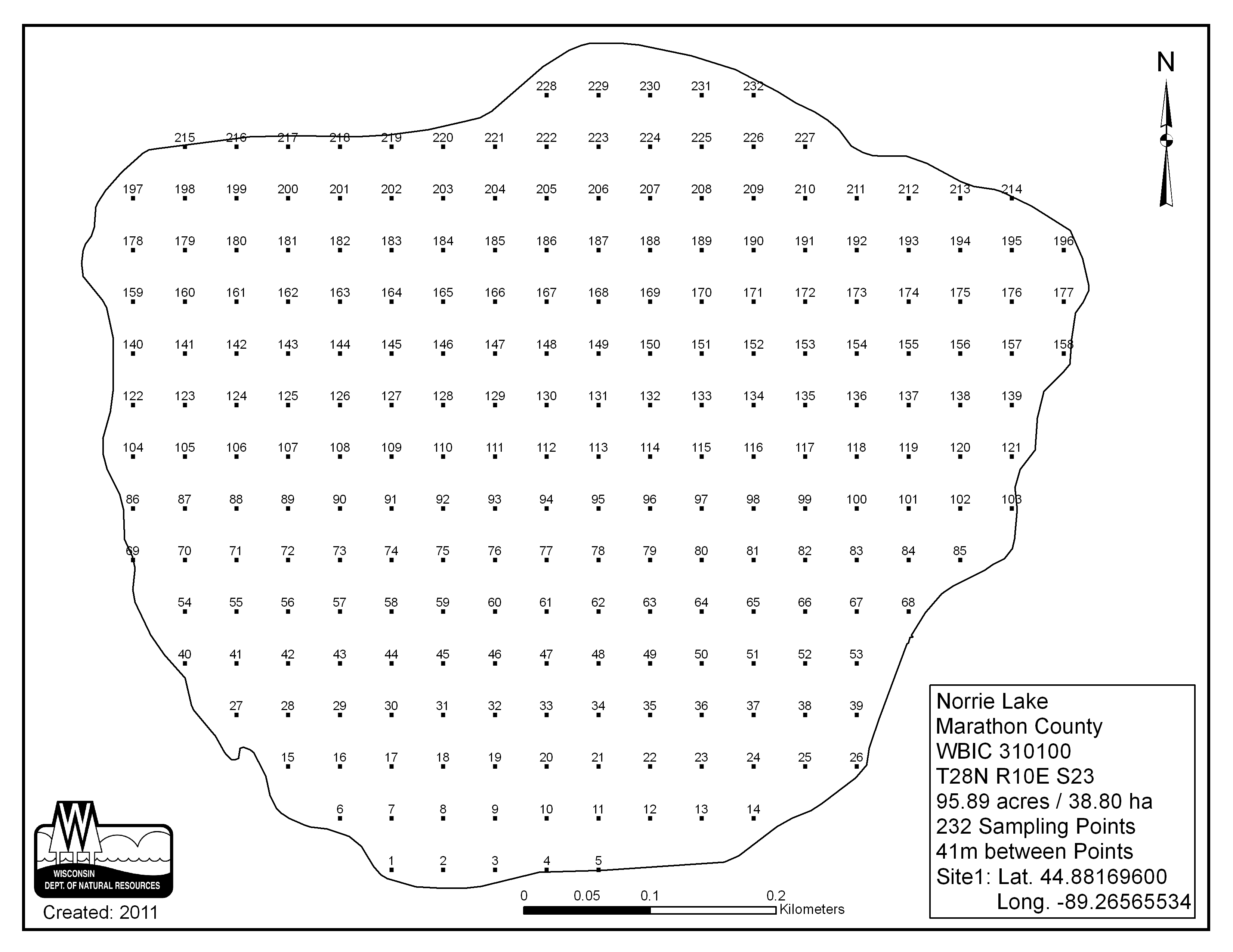Norrie Lake, Marathon County - Aquatic Plant Sampling Map (41 mpts)