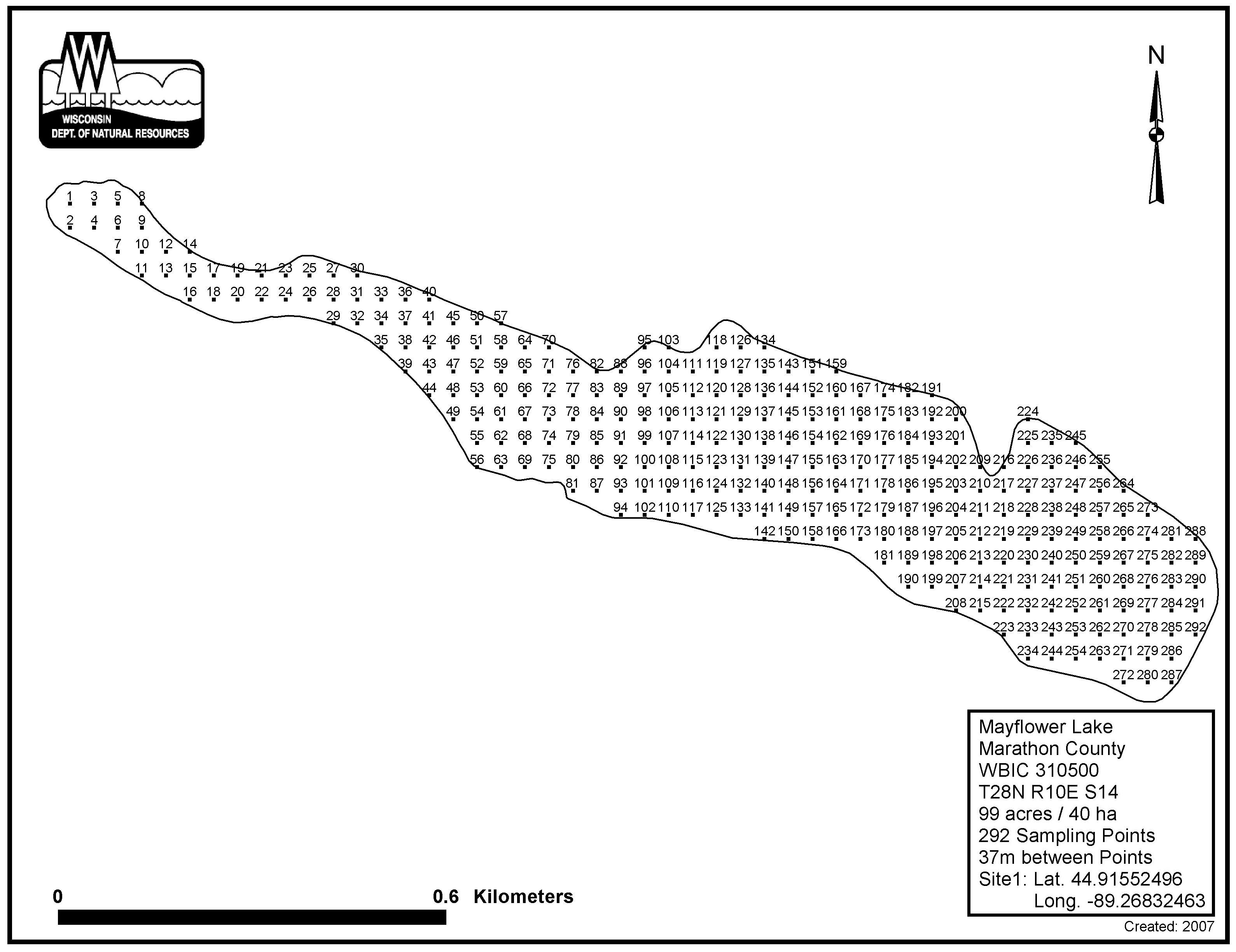 Mayflower Lake, Marathon County - Aquatic Plant Sampling Map (37 mpts)