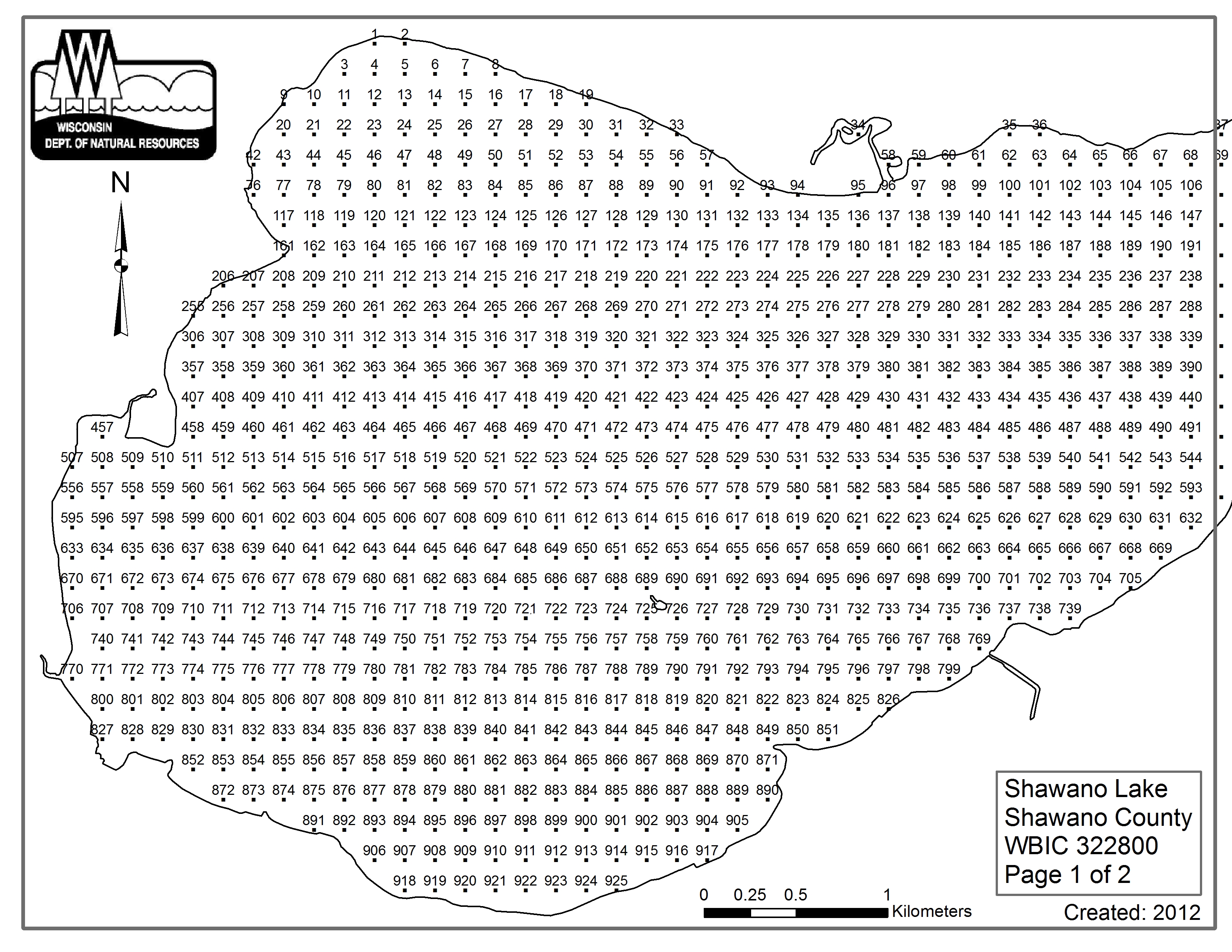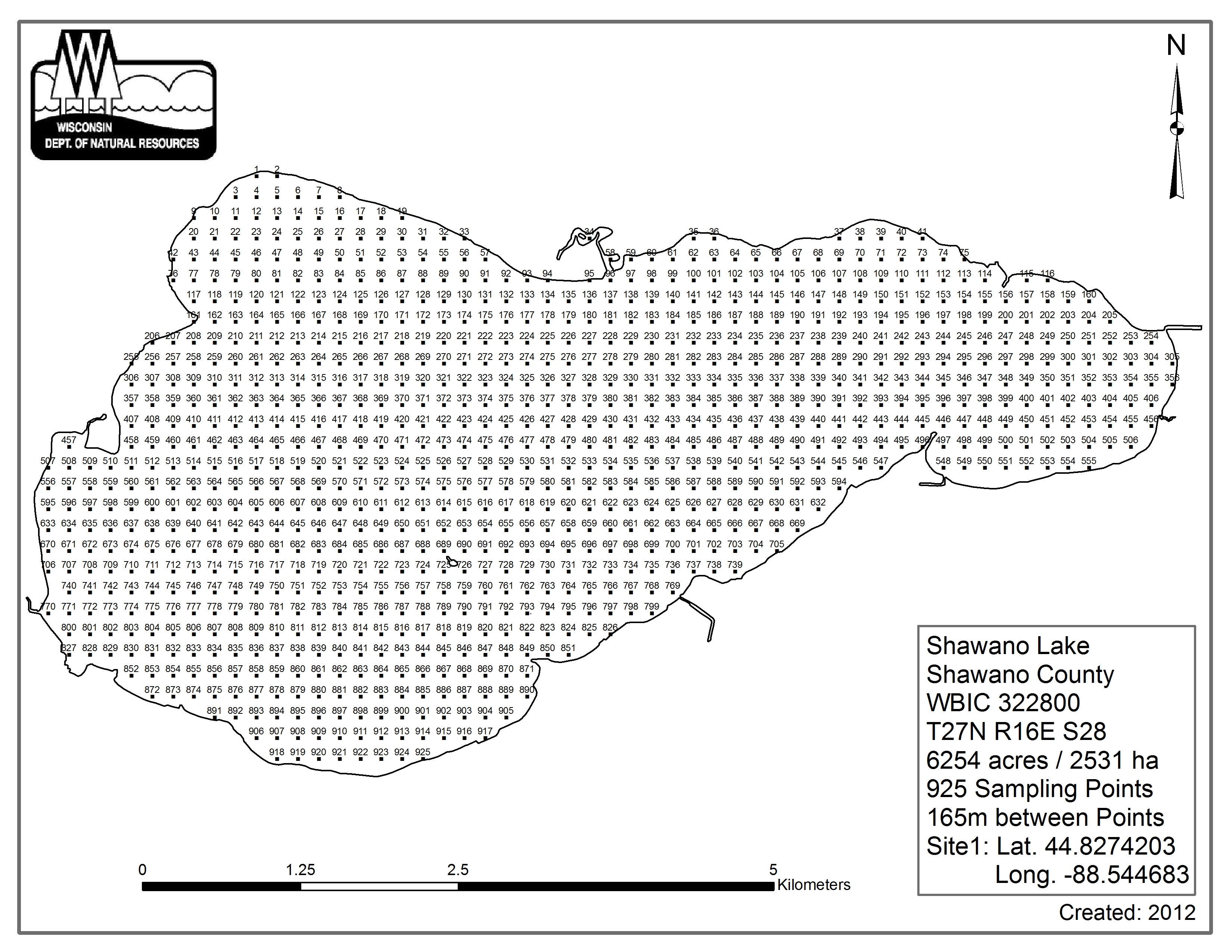 Shawano Lake, Shawano County - Aquatic Plant Sampling Map (1) (165mpts)