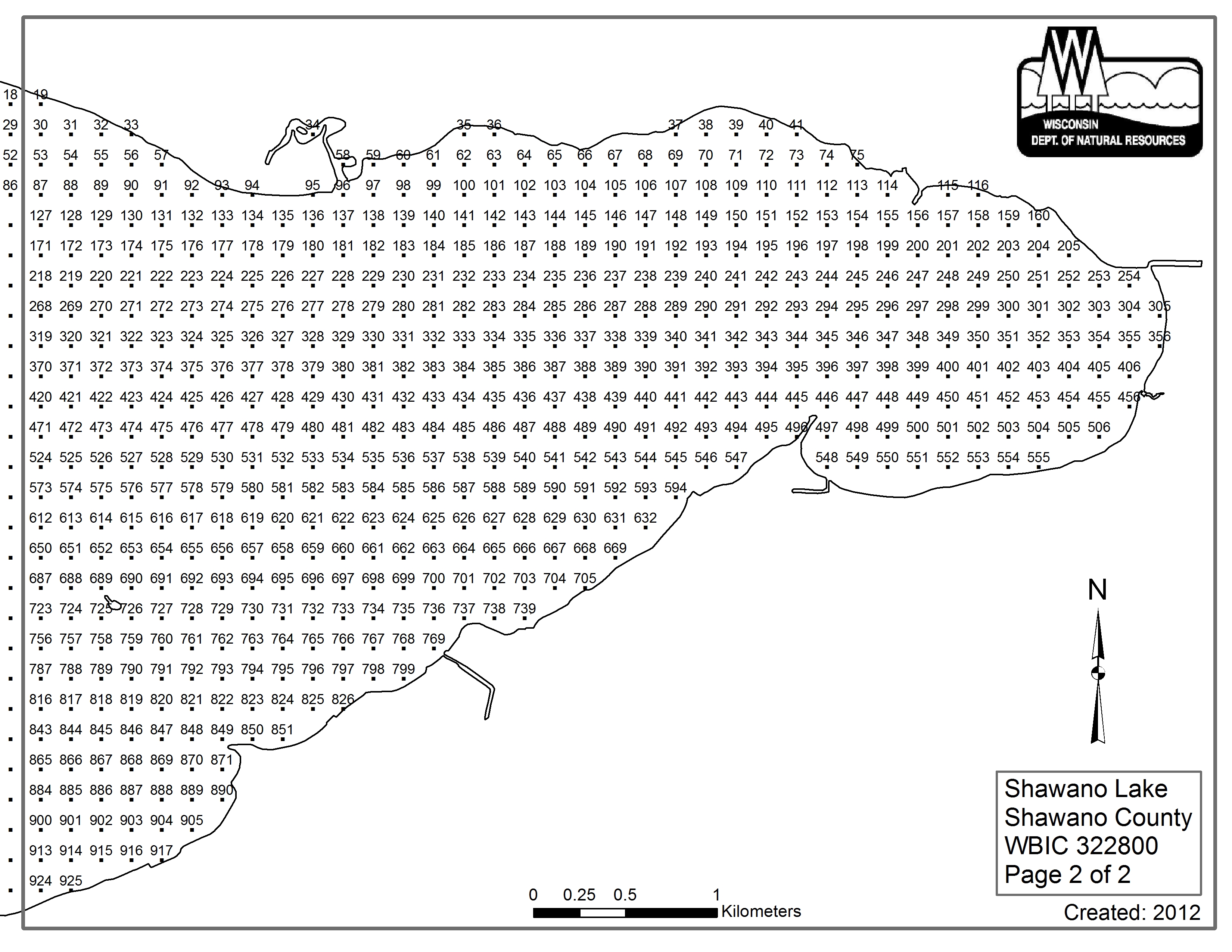 Shawano Lake, Shawano County - Aquatic Plant Sampling Map (2) (165mpts)