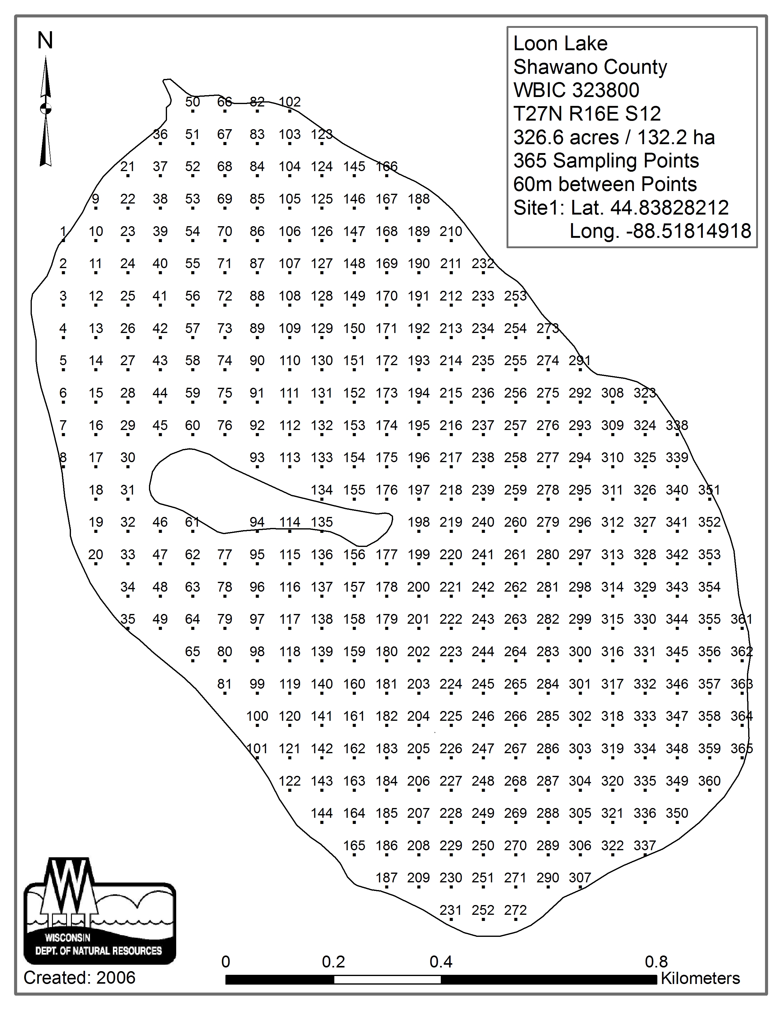 Loon Lake, Shawano County - Aquatic Plant Sampling Map (60 mpts)