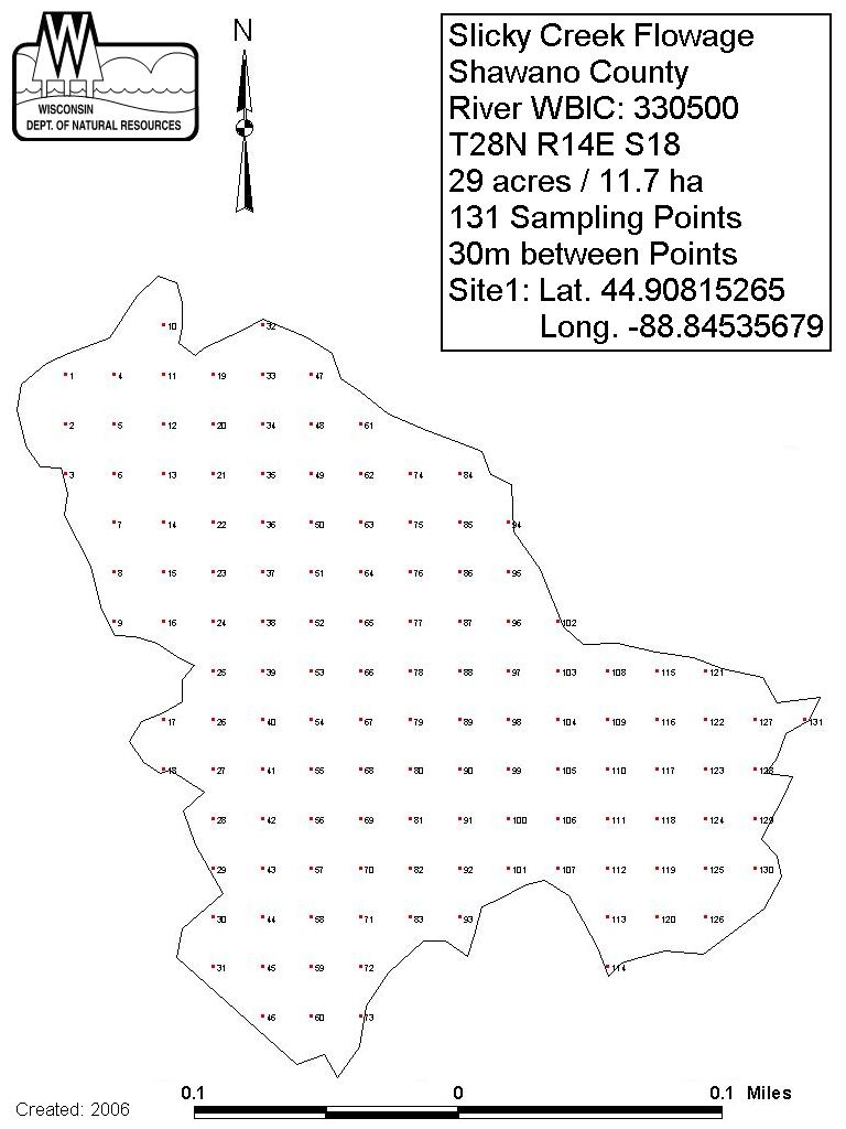 Slicky Creek Flowage, Shawano County - Aquatic Plant Sampling Map (30 mpts)