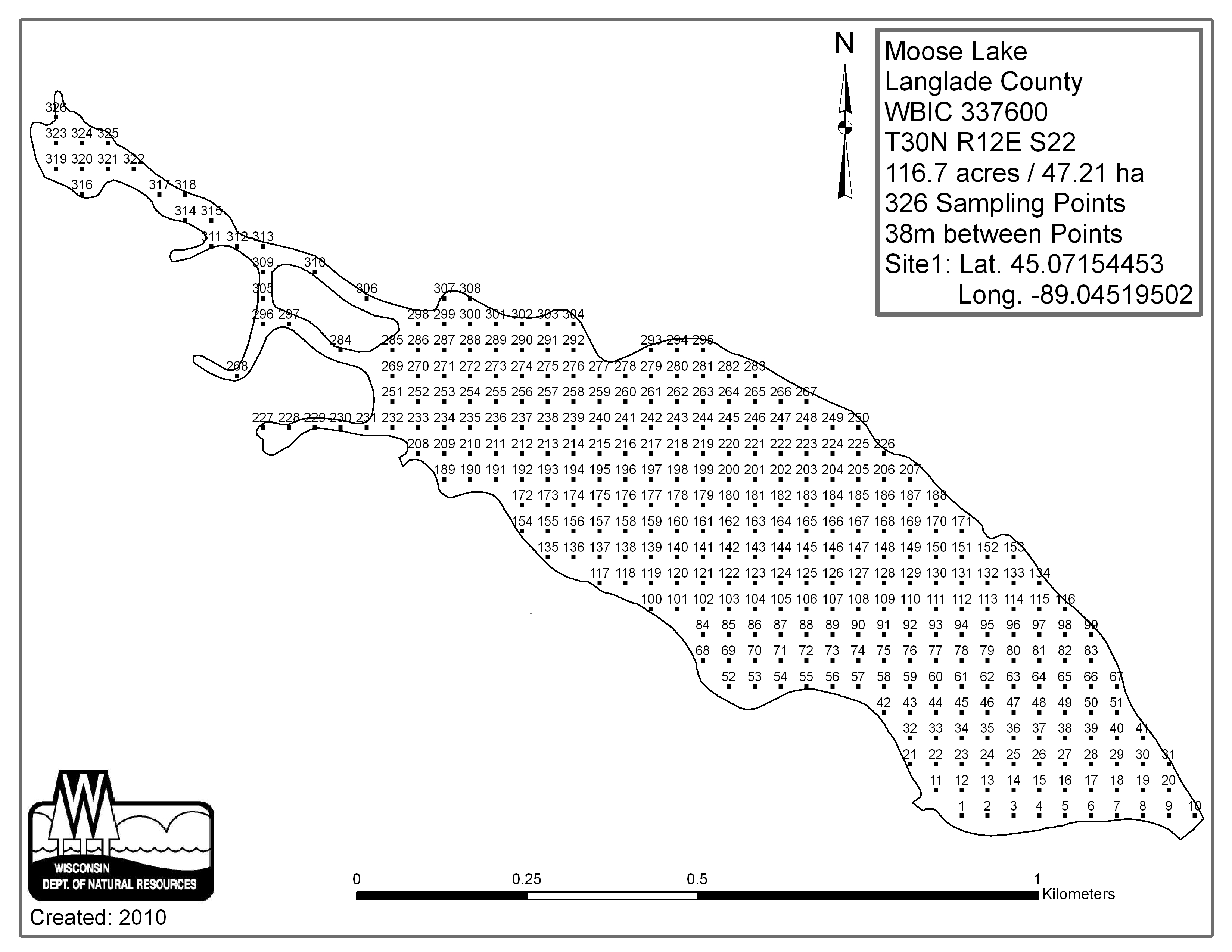 Moose Lake, Langlade County - Aquatic Plant Sampling Map (38 mpts)