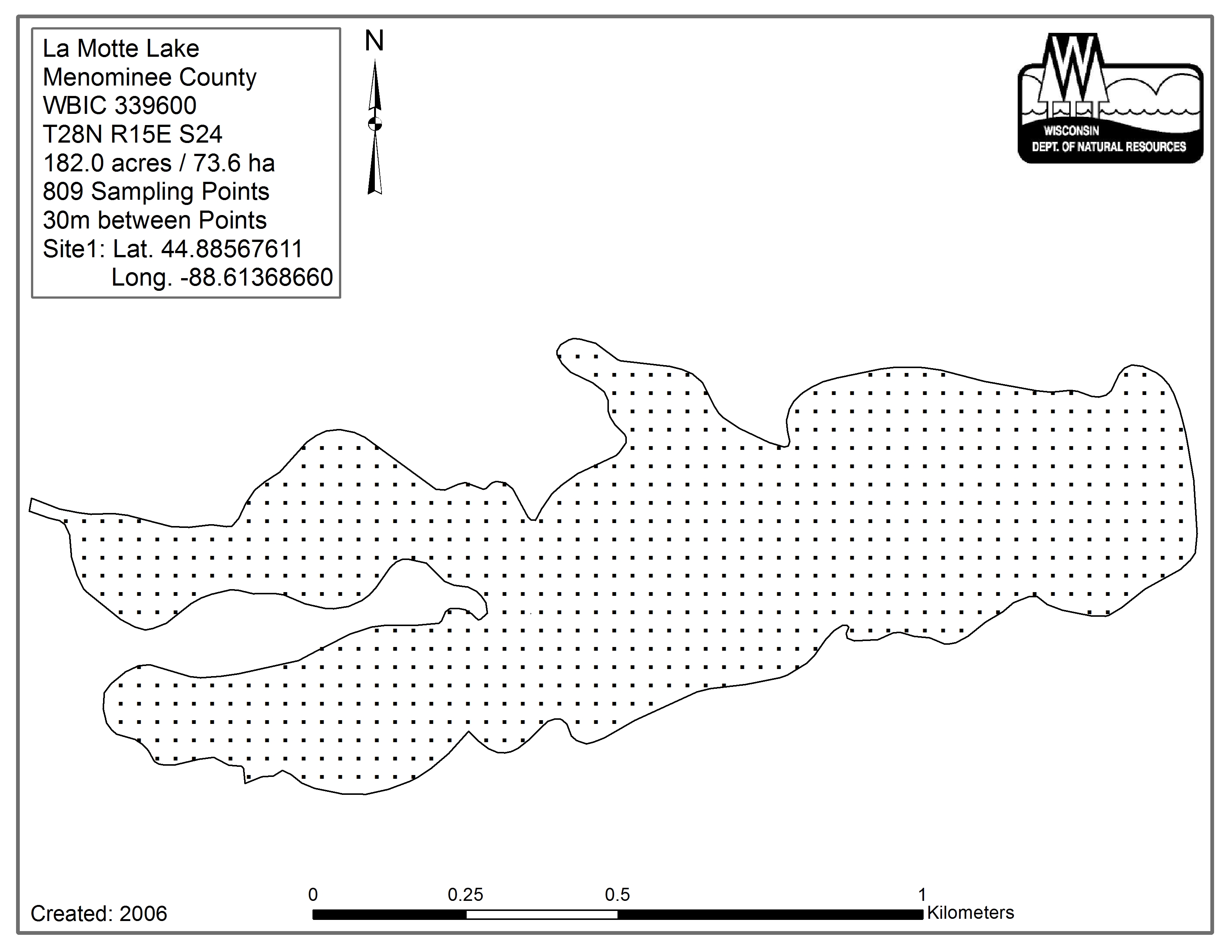 La Motte Lake, Menominee County - Aquatic Plant Sampling Map (3)(30 mpts)