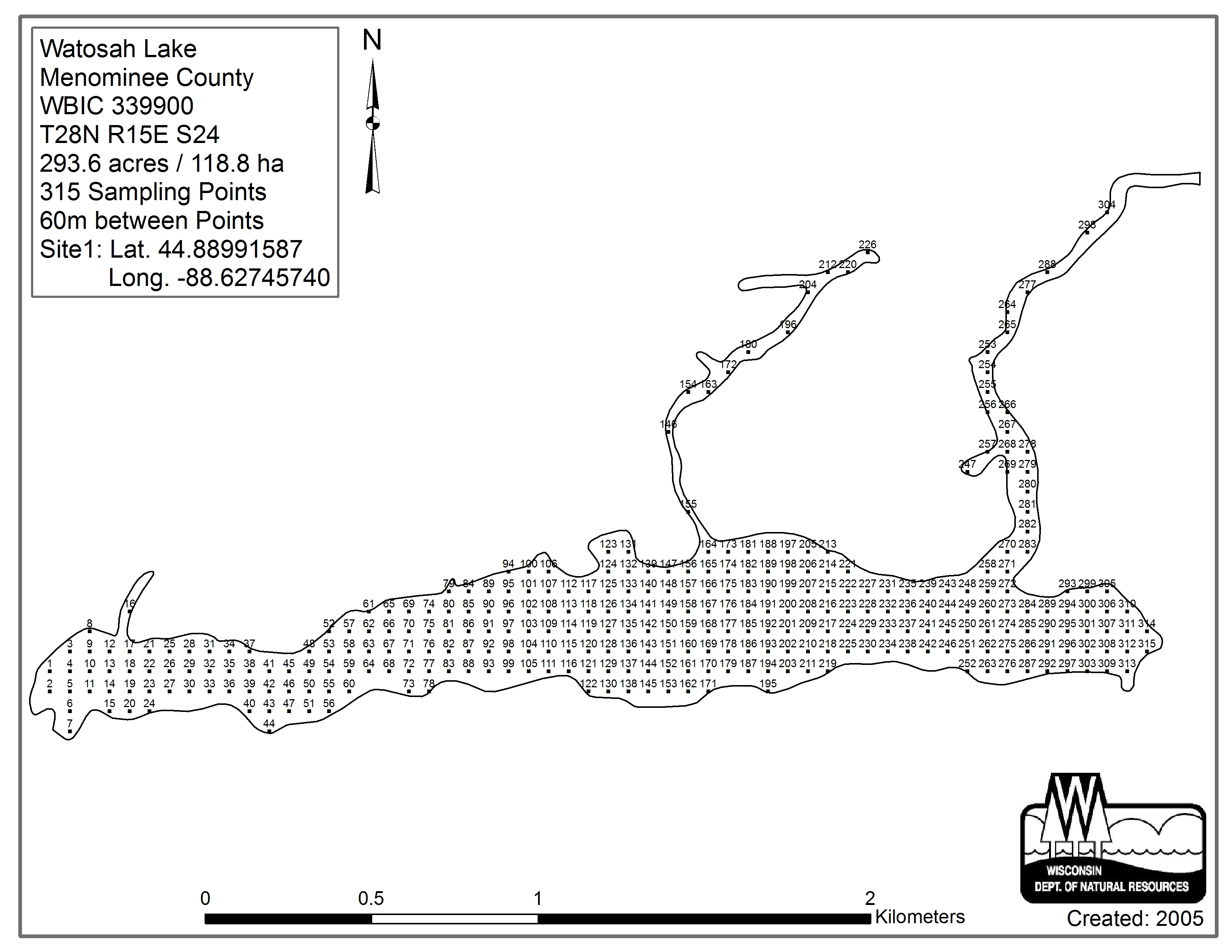 Skice Lake, Menominee County - Aquatic Plant Sampling Map (60 mpts)