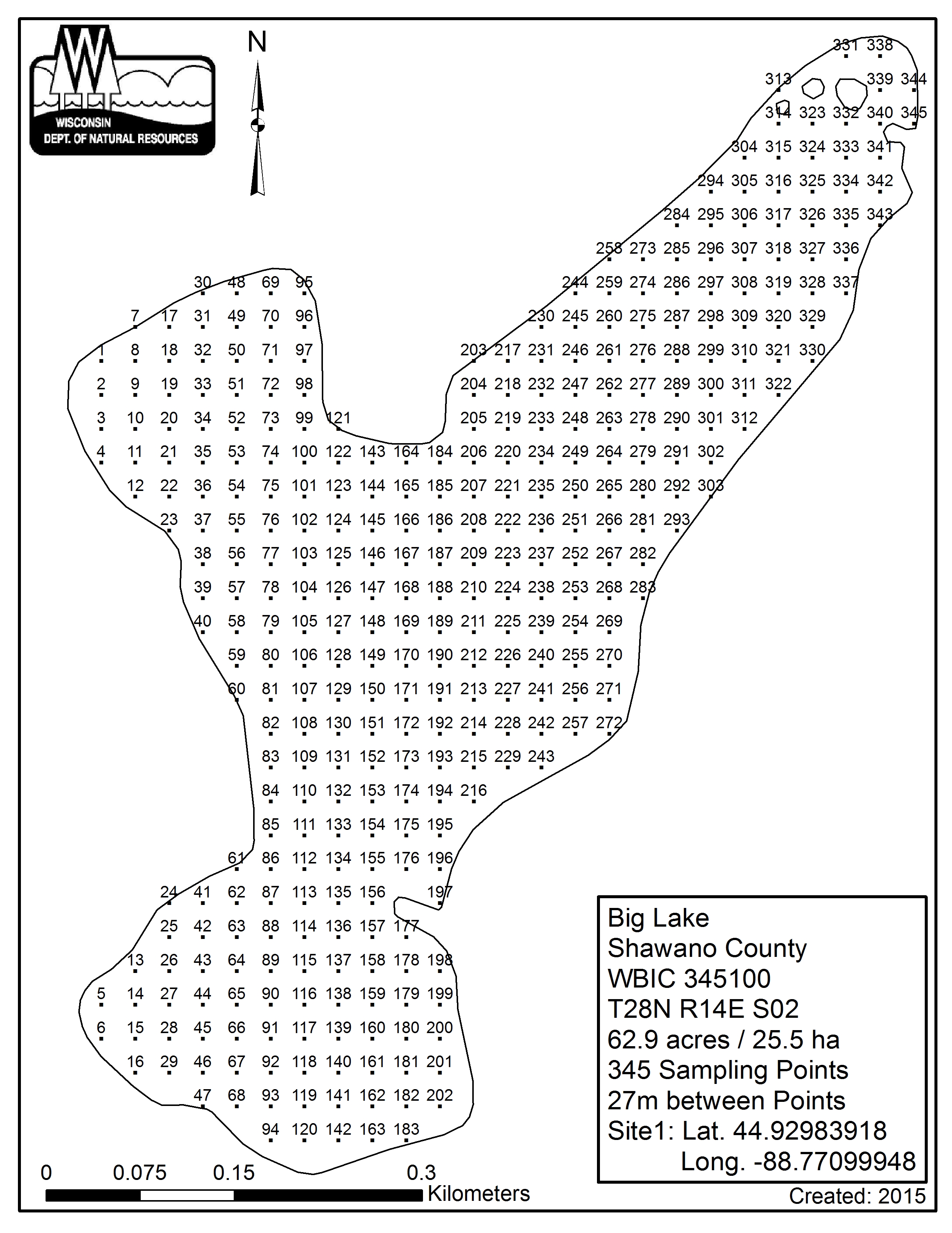 Big Lake, Shawano County - Aquatic Plant Sampling Map (27 mpts)
