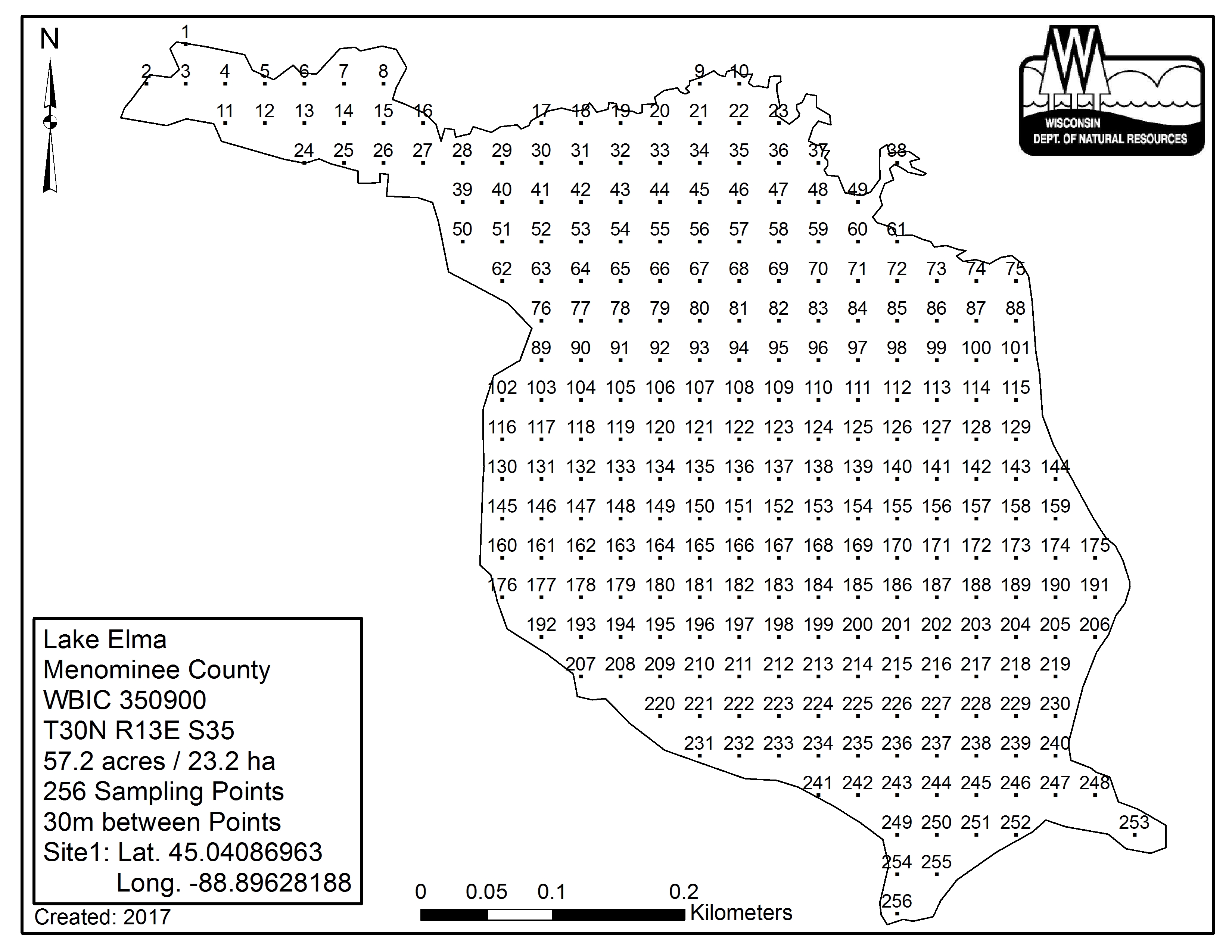 Lake Elma, Menominee County - Aquatic Plant Sampling Map (30 mpts)