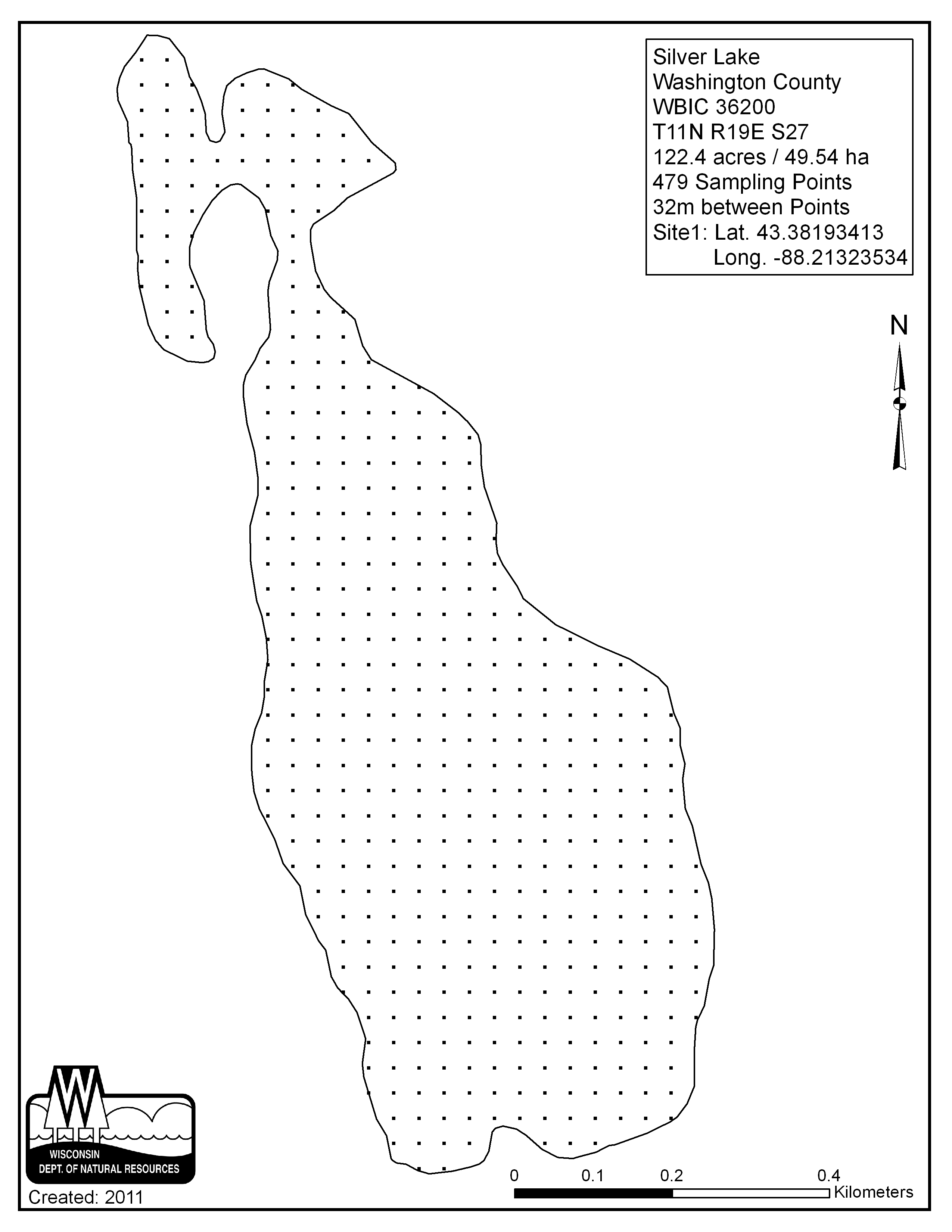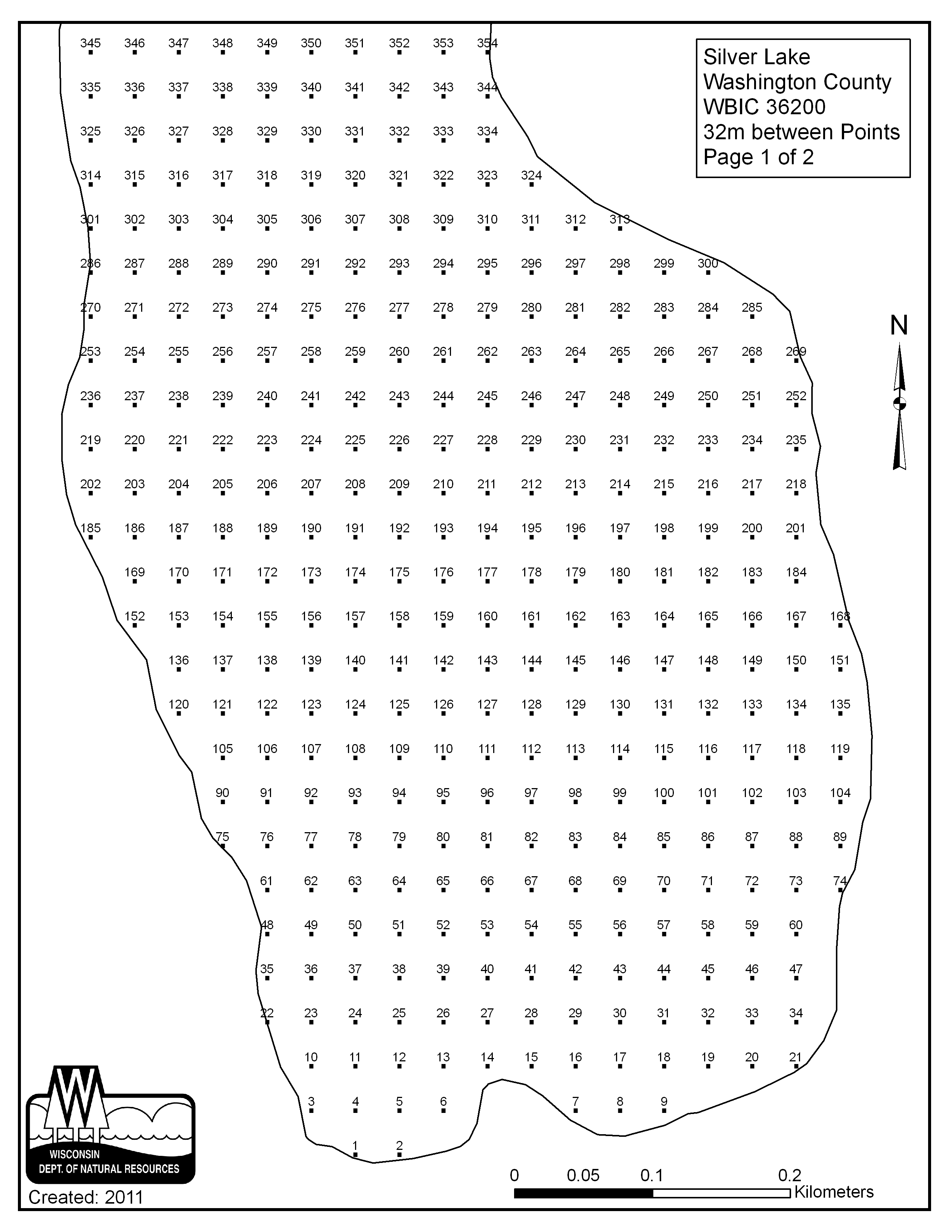 Silver Lake, Washington County - Aquatic Plant Sampling Map (1)(32 mpts)