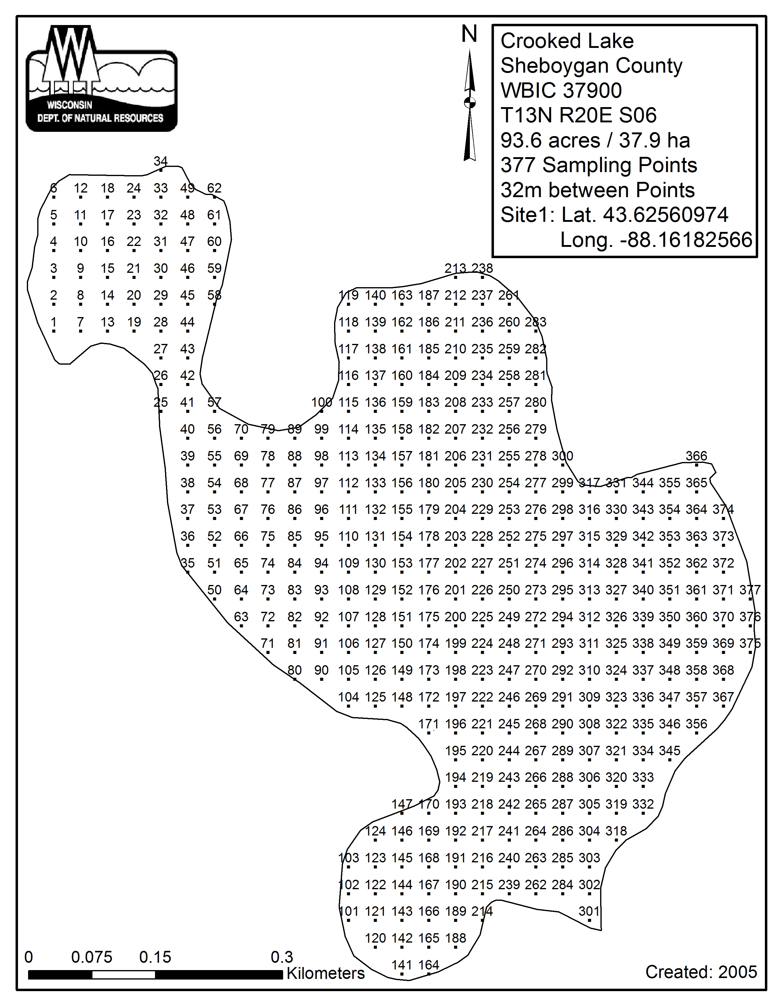 Crooked Lake, Sheboygan/Fond du Lac County - Aquatic Plant Sampling Map (32 mpts)