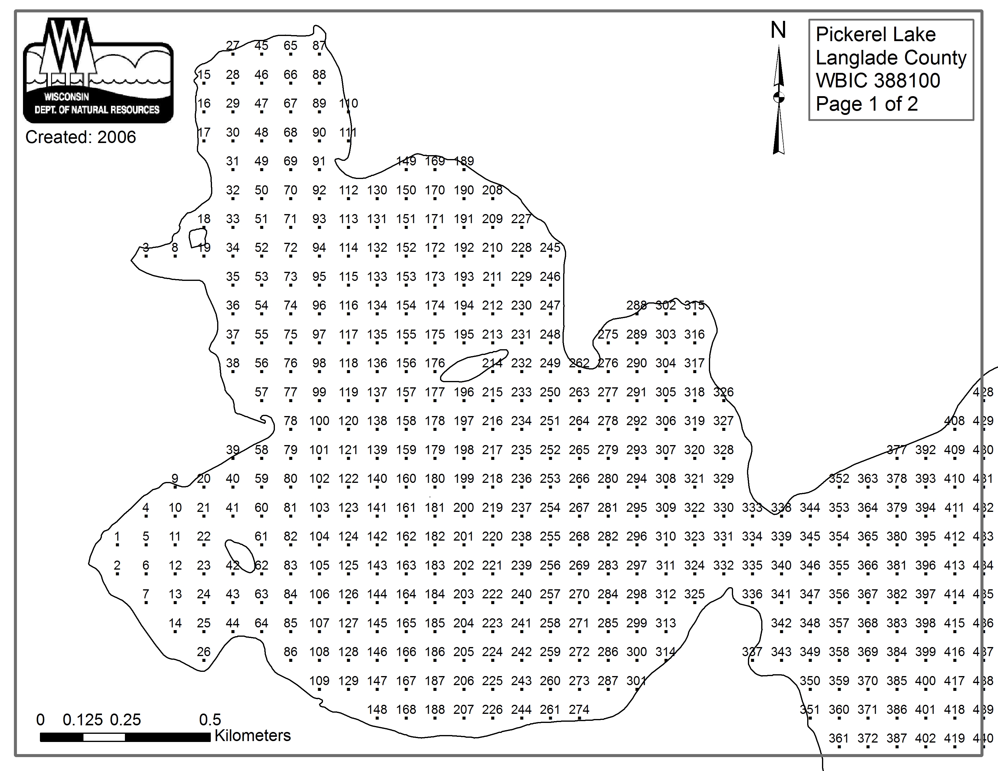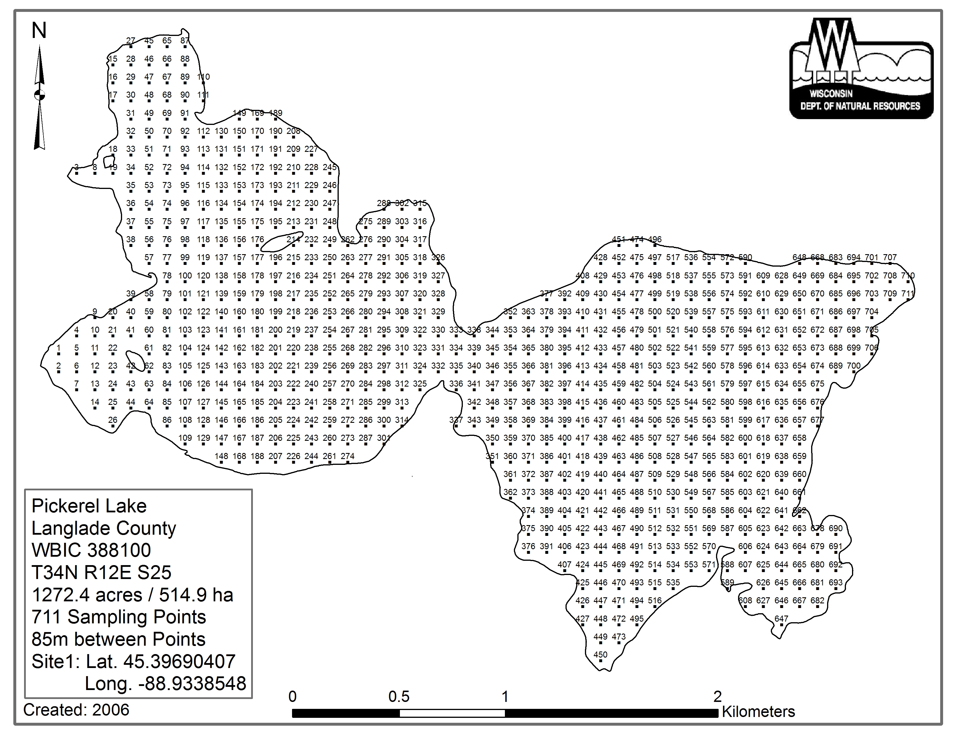 Pickerel Lake, Langlade/Forest County - Aquatic Plant Sampling Map (1)(85 mpts)