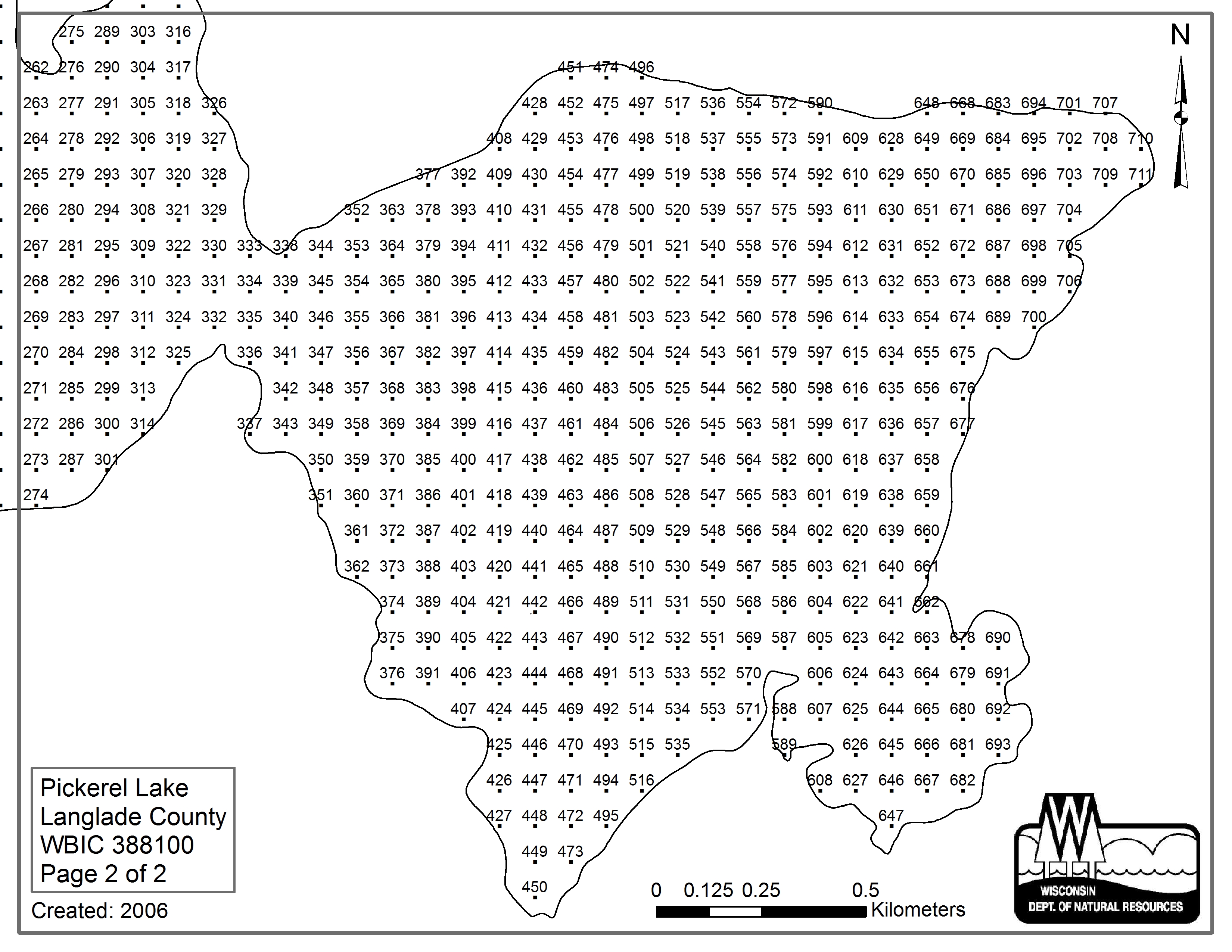 Pickerel Lake, Langlade/Forest County - Aquatic Plant Sampling Map (2)(85 mpts)