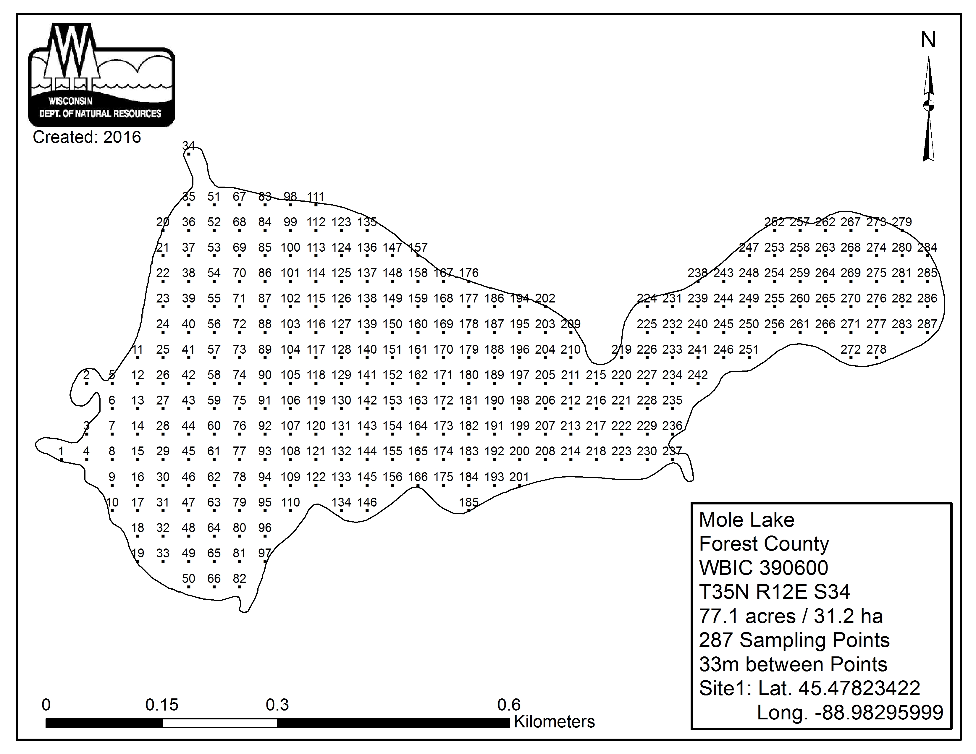 Mole Lake, Forest County - Aquatic Plant Sampling Map (33 mpts)
