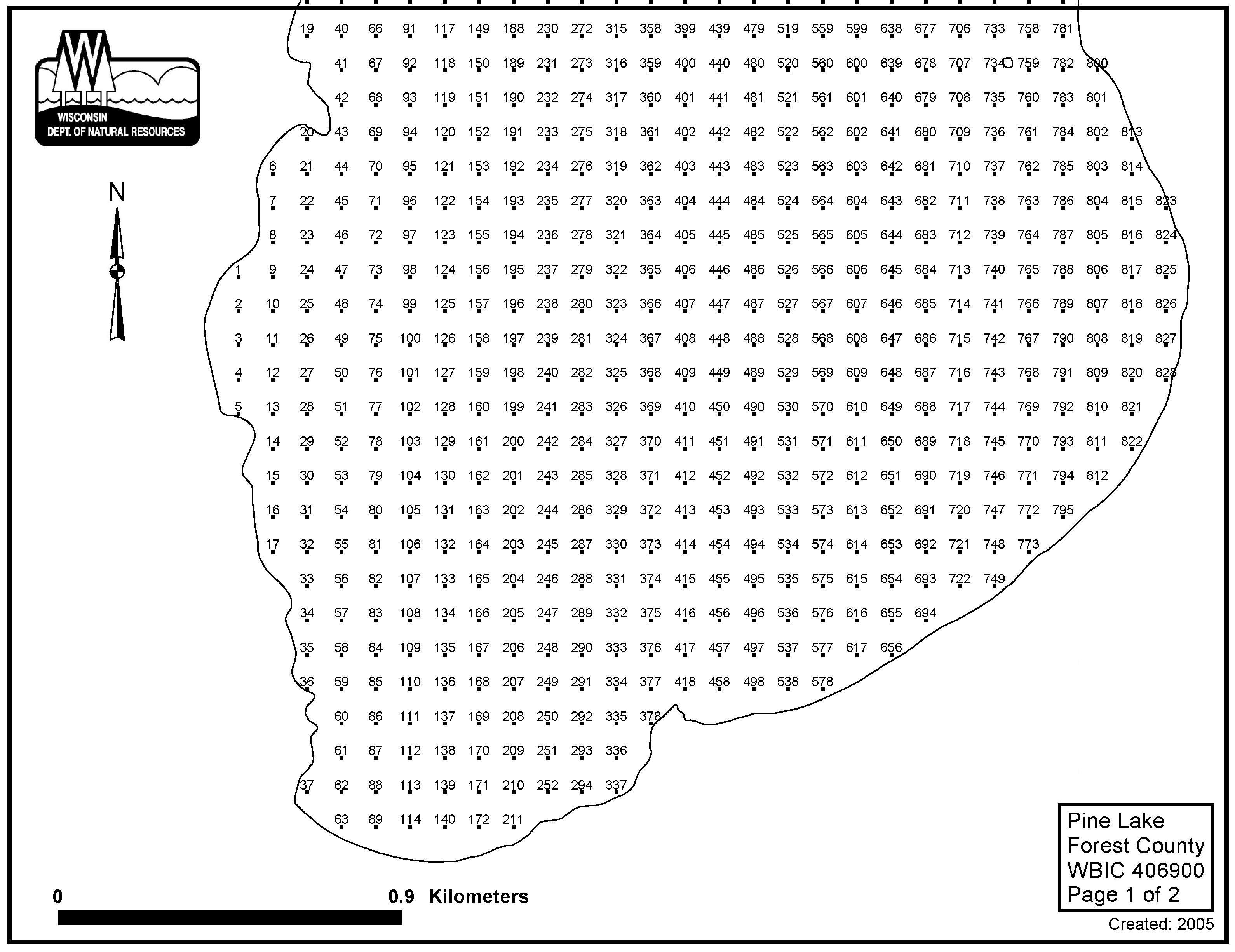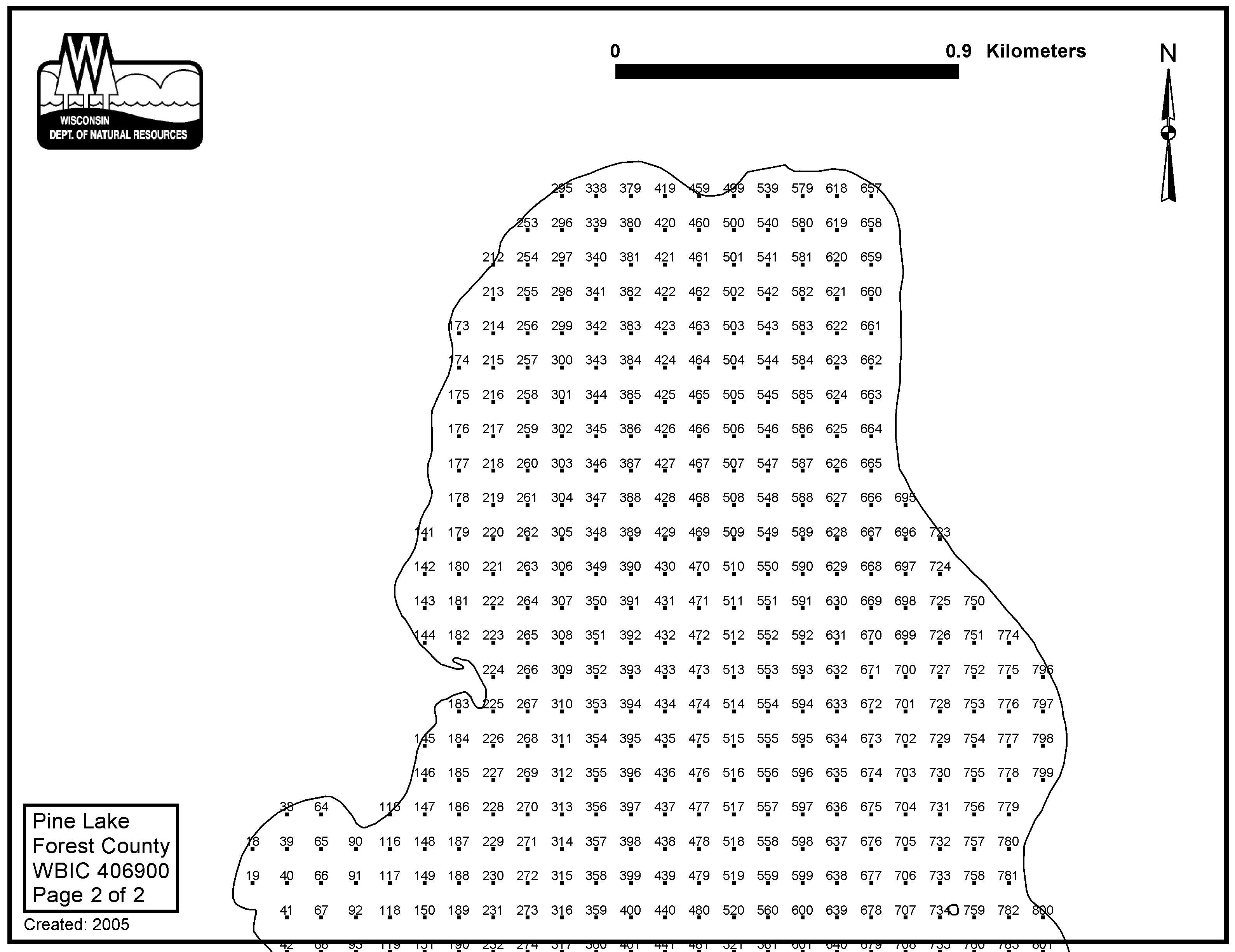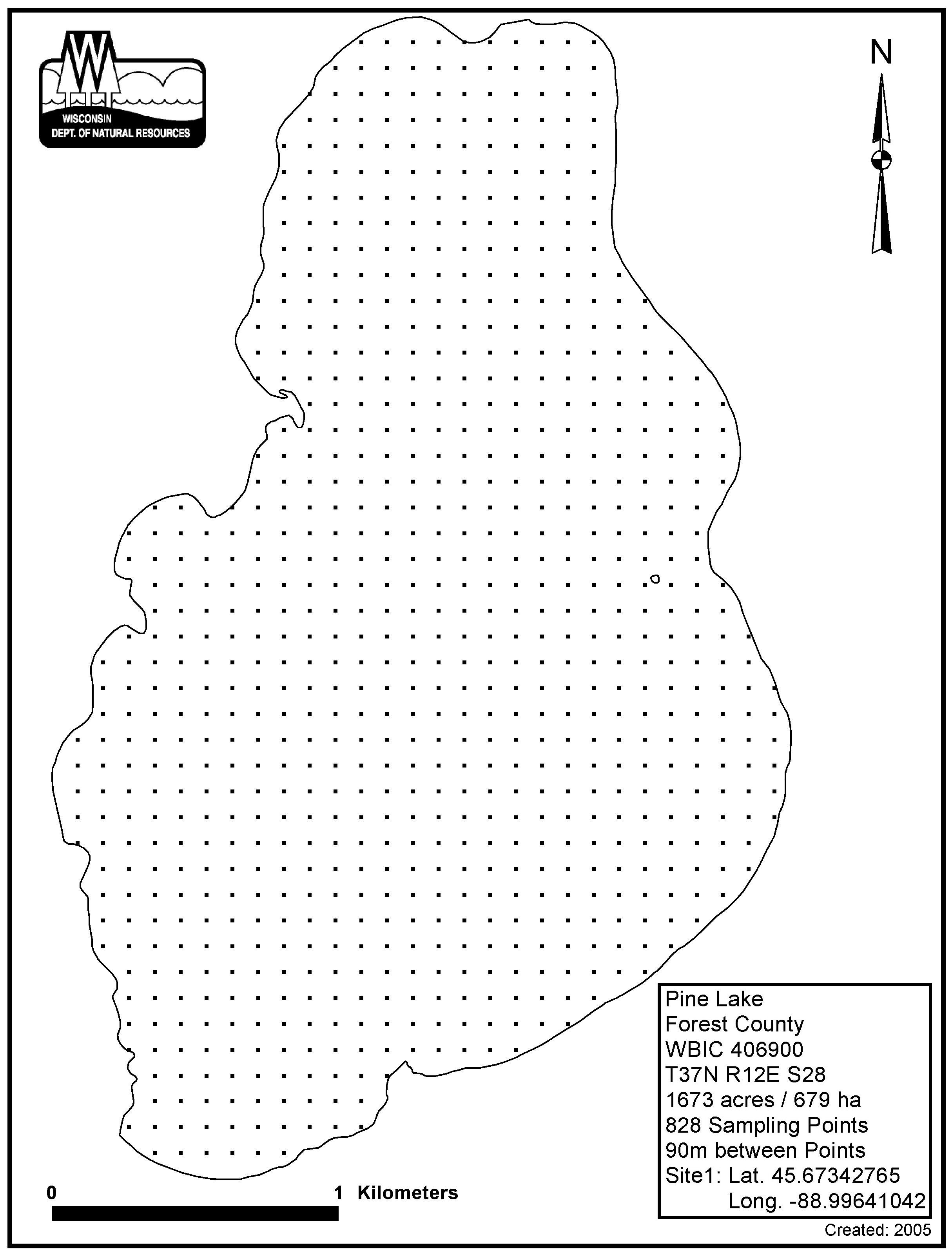Pine Lake, Forest County - Aquatic Plant Sampling Map (2)(90 mpts)