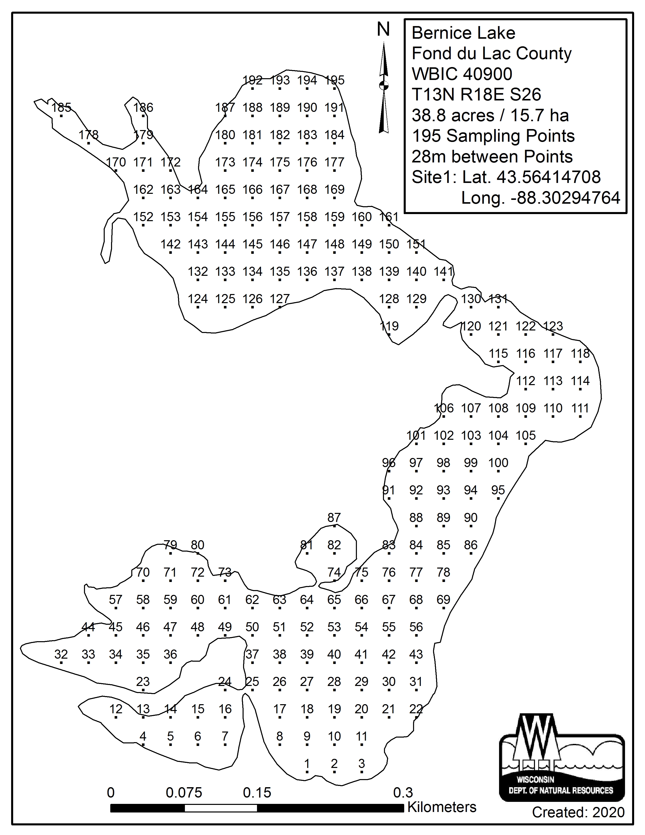 Bernice Lake, Fond du Lac County - Aquatic Plant Sampling Map (28 mpts)
