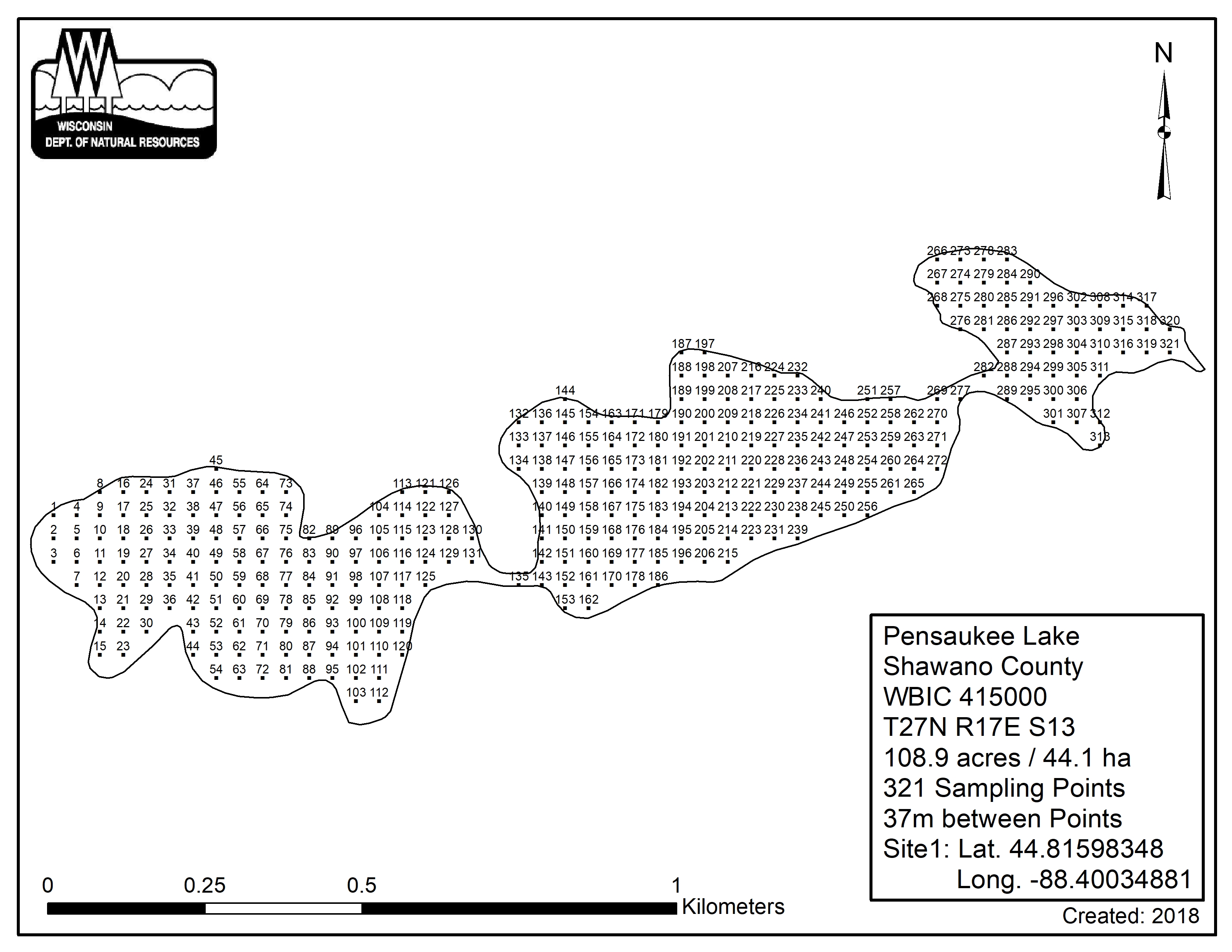 Pensaukee Lake, Shawano County - Aquatic Plant Sampling Map (37 mpts)