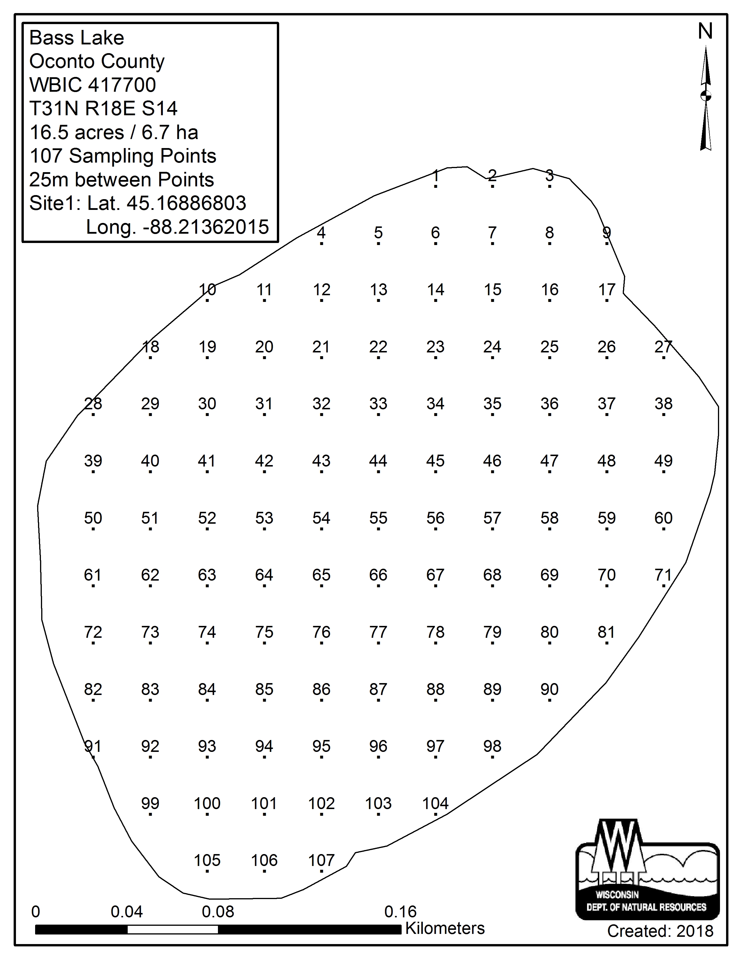Bass Lake, Oconto County (417700) - Aquatic Plant Sampling Map (25 mpts)