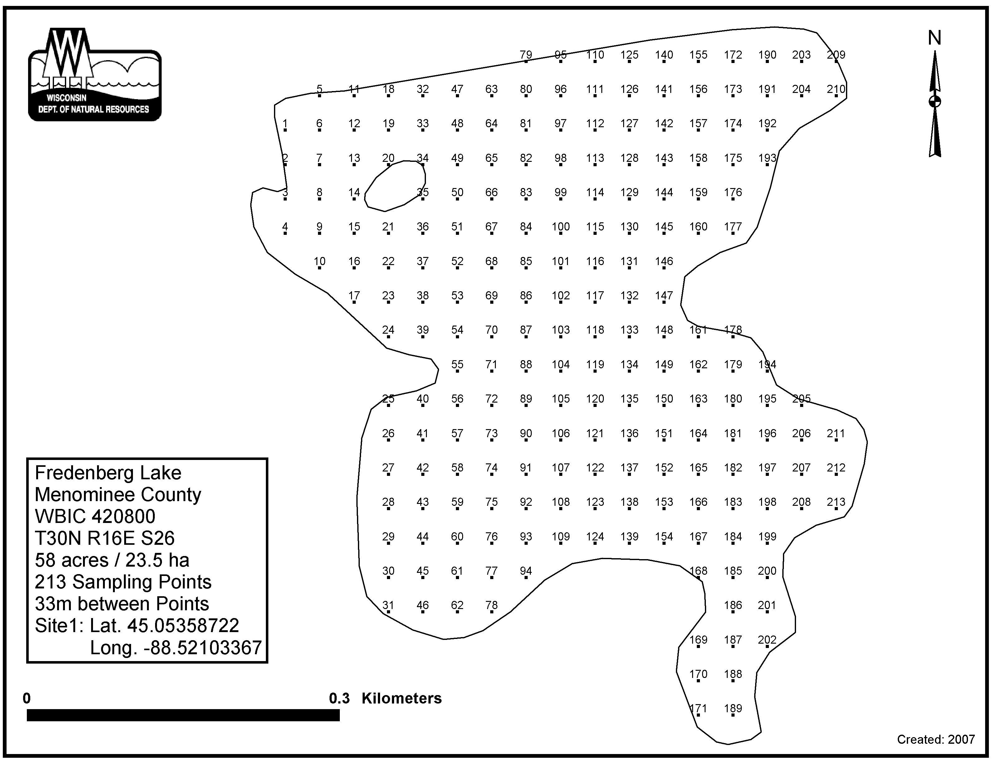 Fredenberg Lake, Menominee County - Aquatic Plant Sampling Map (33 mpts)