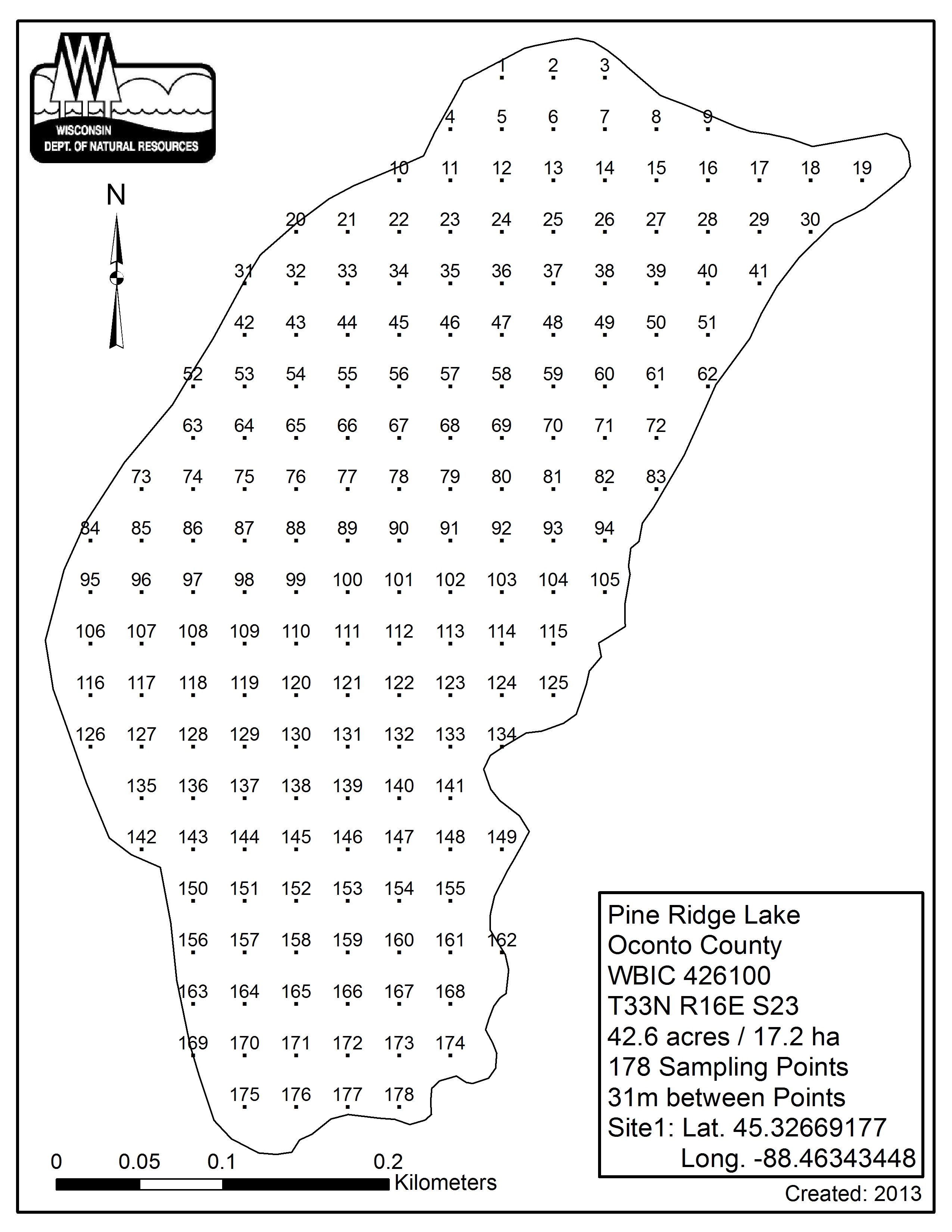 Pine Ridge Lake, Oconto County - Aquatic Plant Sampling Map (31 mpts)
