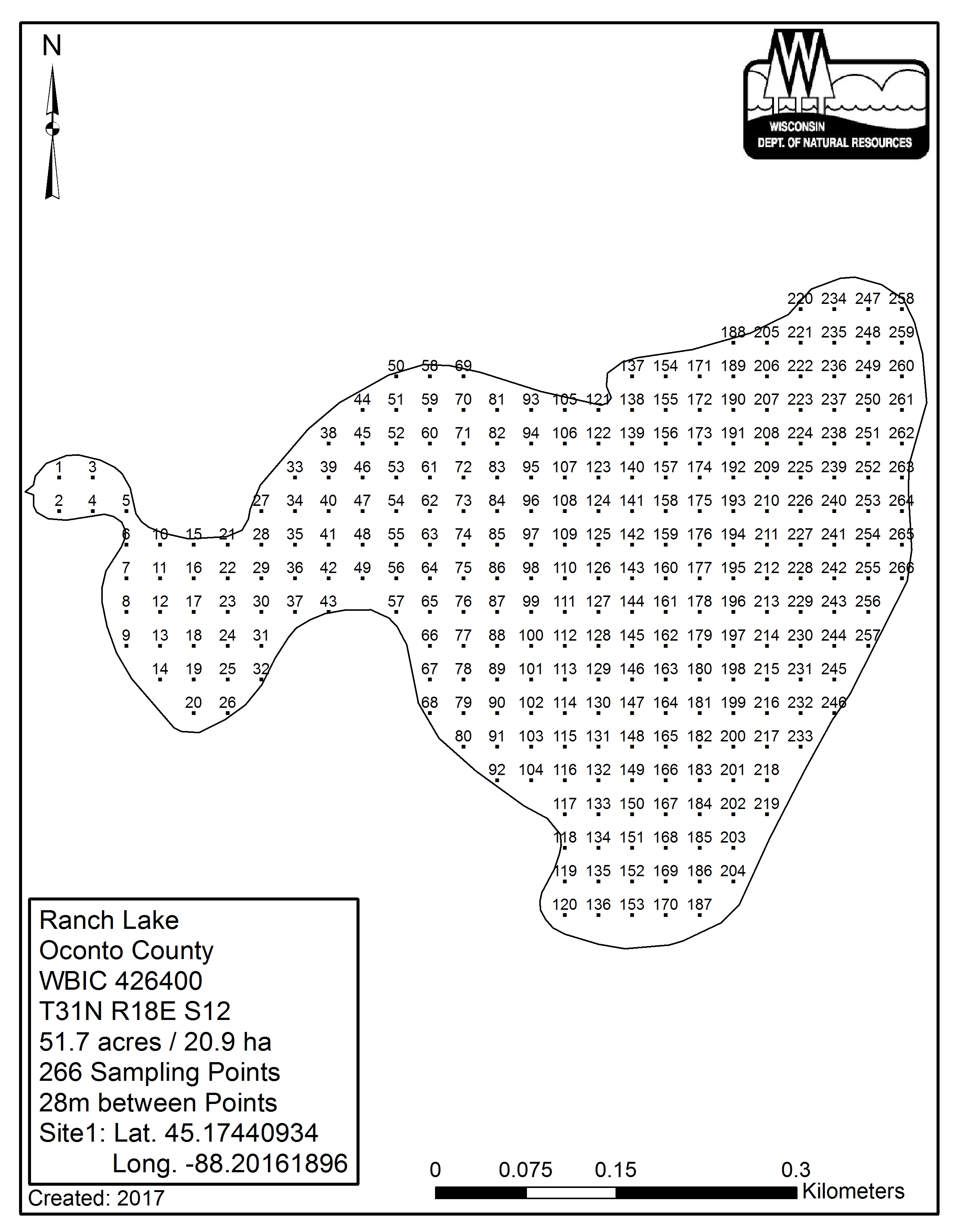 Ranch Lake, Oconto County - Aquatic Plant Sampling Map (28 mpts)