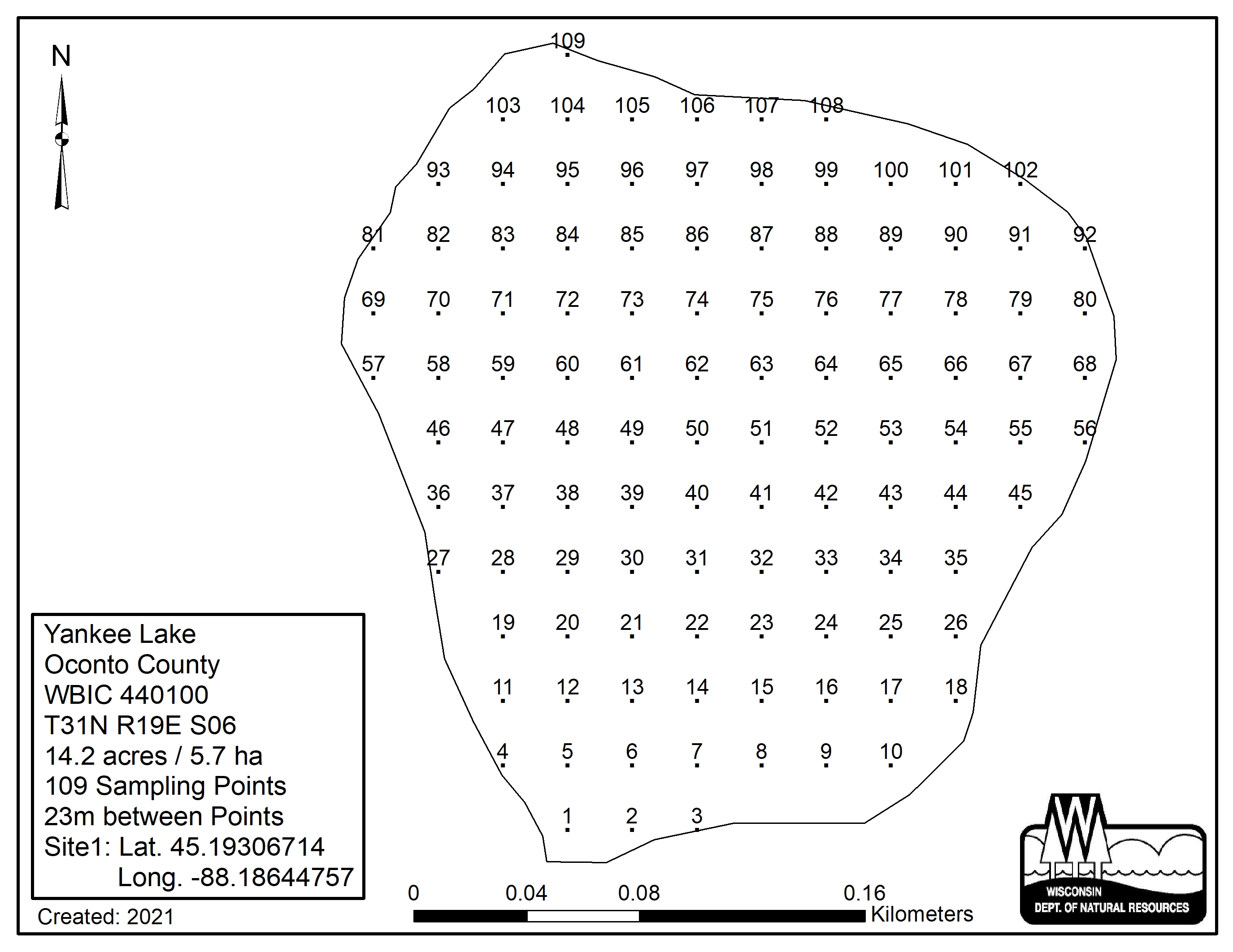 Yankee Lake, Oconto County - Aquatic Plant Sampling Map (23 mpts)