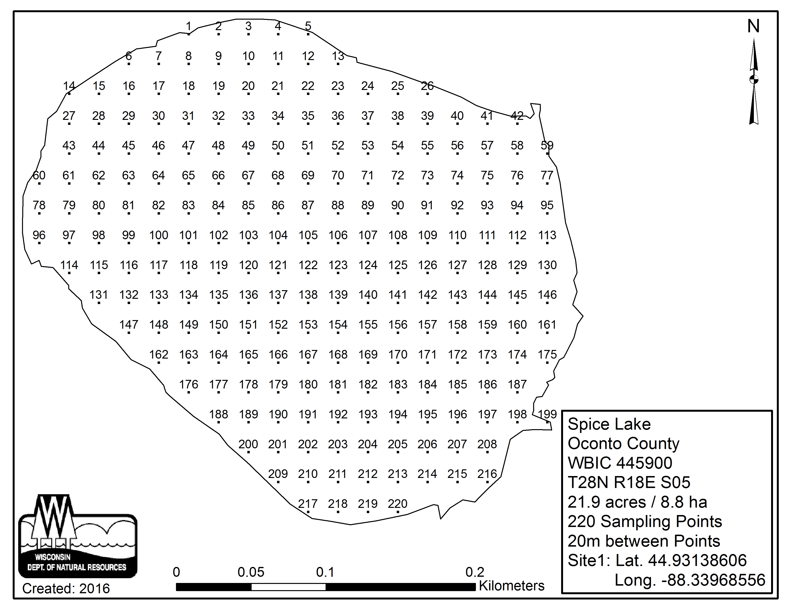 Spice Lake, Oconto County - Aquatic Plant Sampling Map (20 mpts)