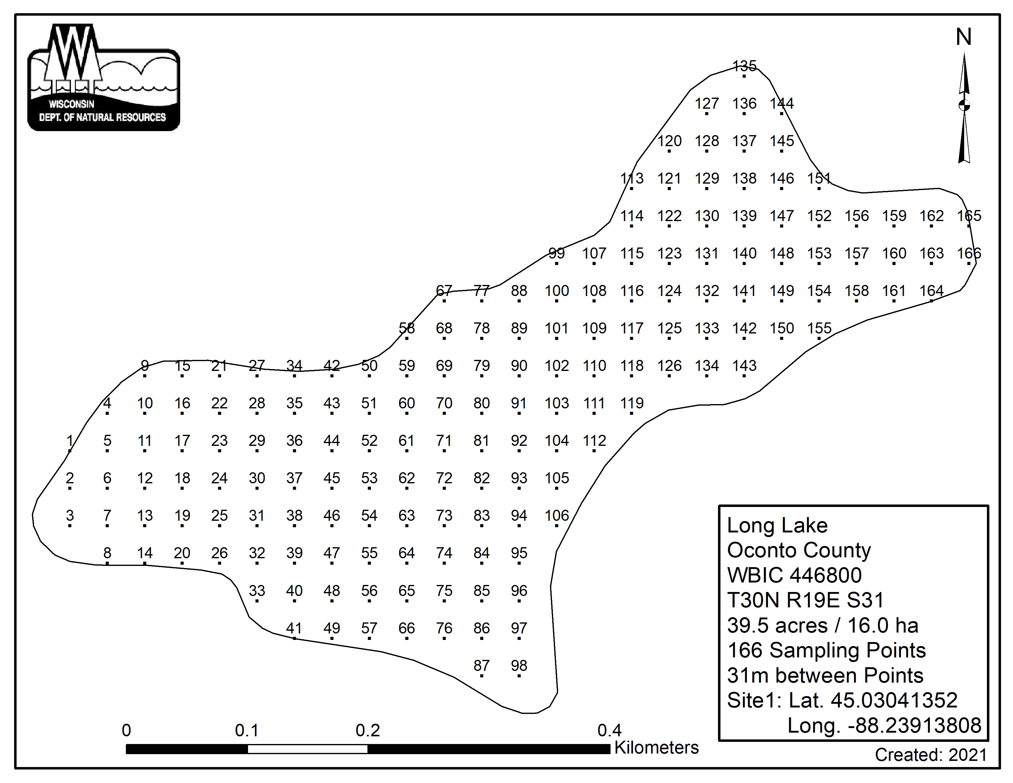 Long Lake, Oconto County - Aquatic Plant Sampling Map (31 mpts)