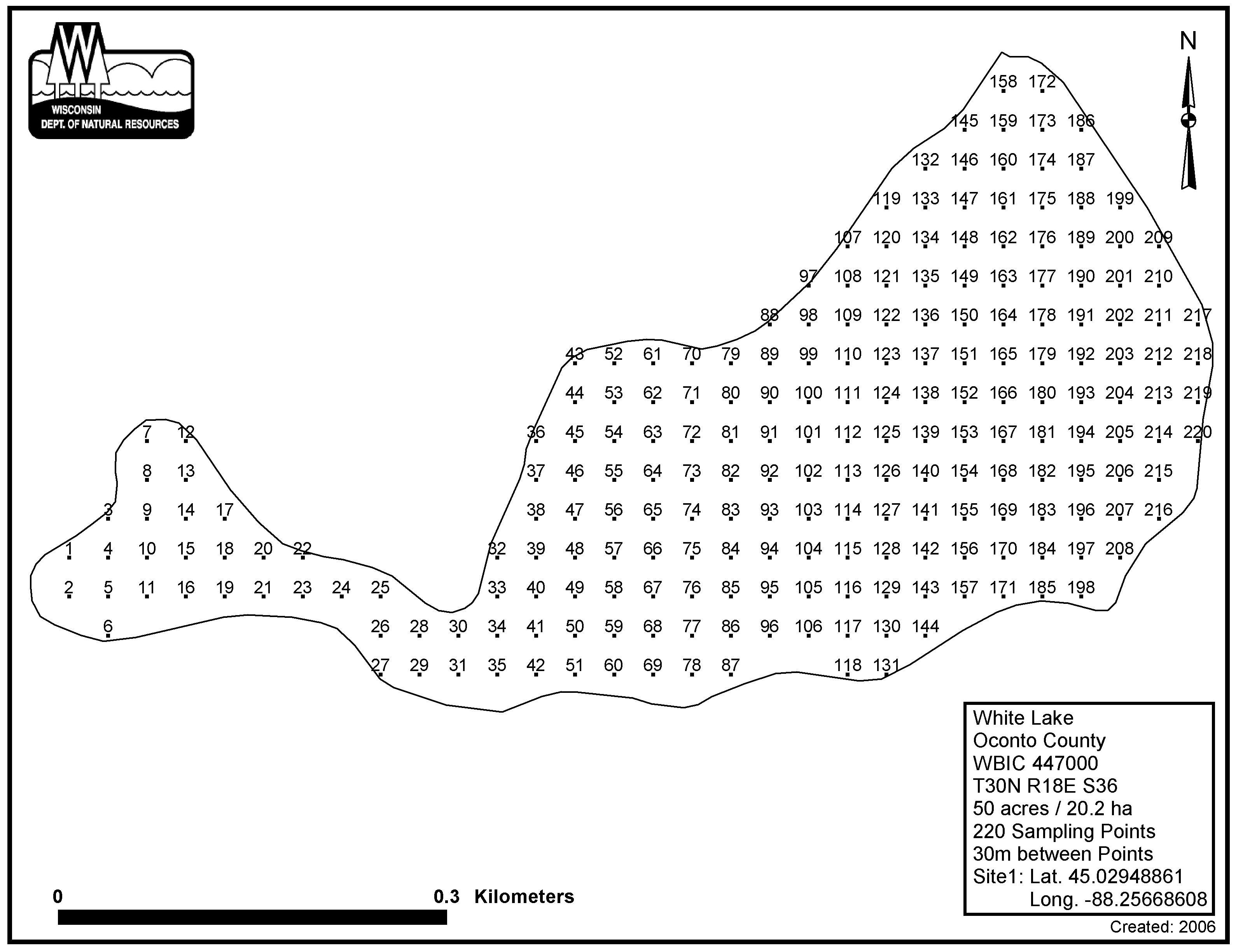 White Lake, Oconto County - Aquatic Plant Sampling Map (30 mpts)
