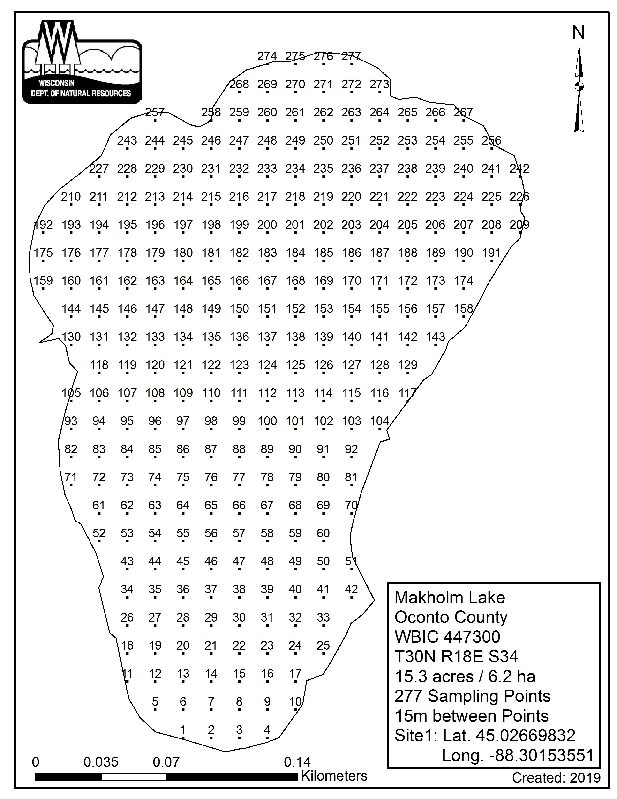 Makholm Lake, Oconto County - Aquatic Plant Sampling Map (15 mpts)