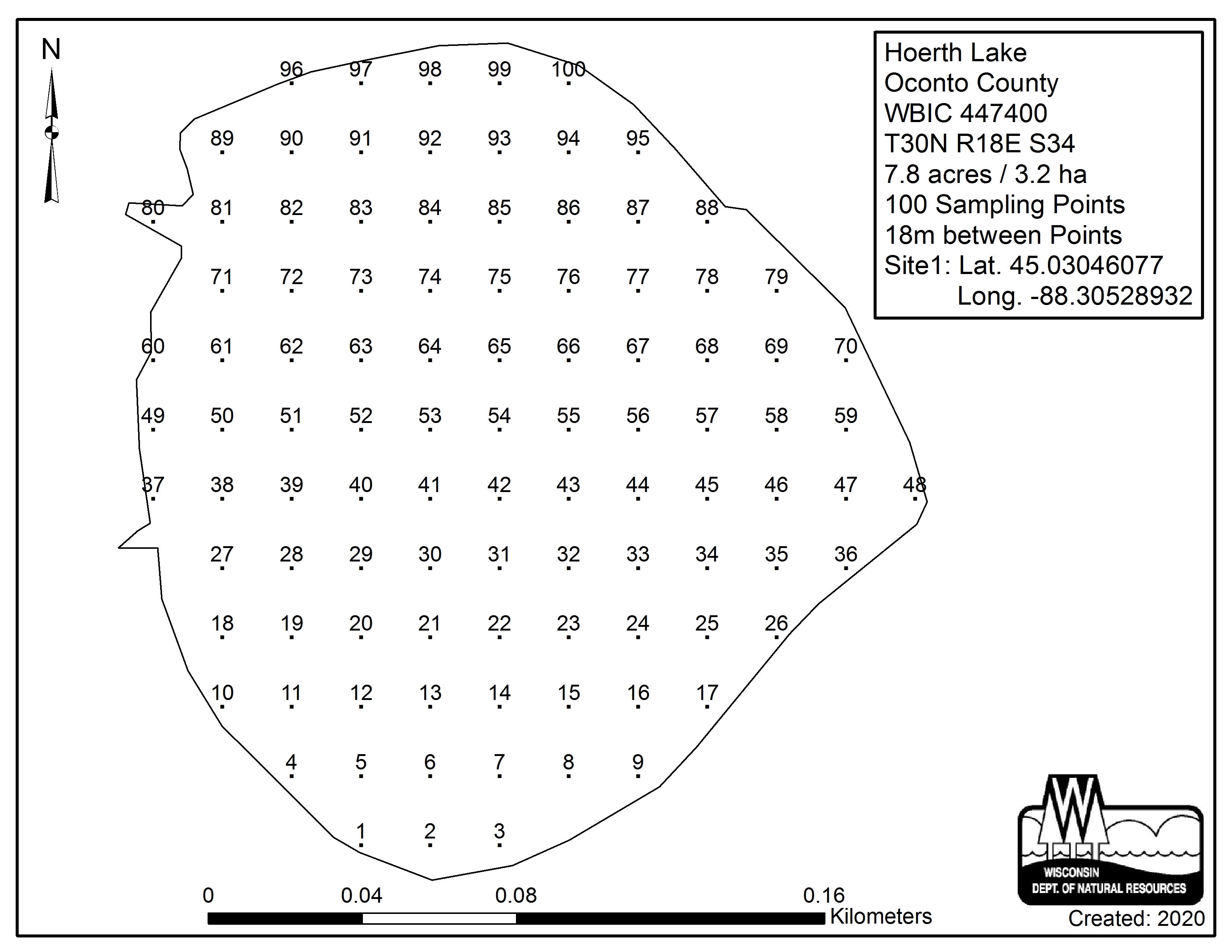 Hoerth Lake, Oconto County - Aquatic Plant Sampling Map (18 mpts)