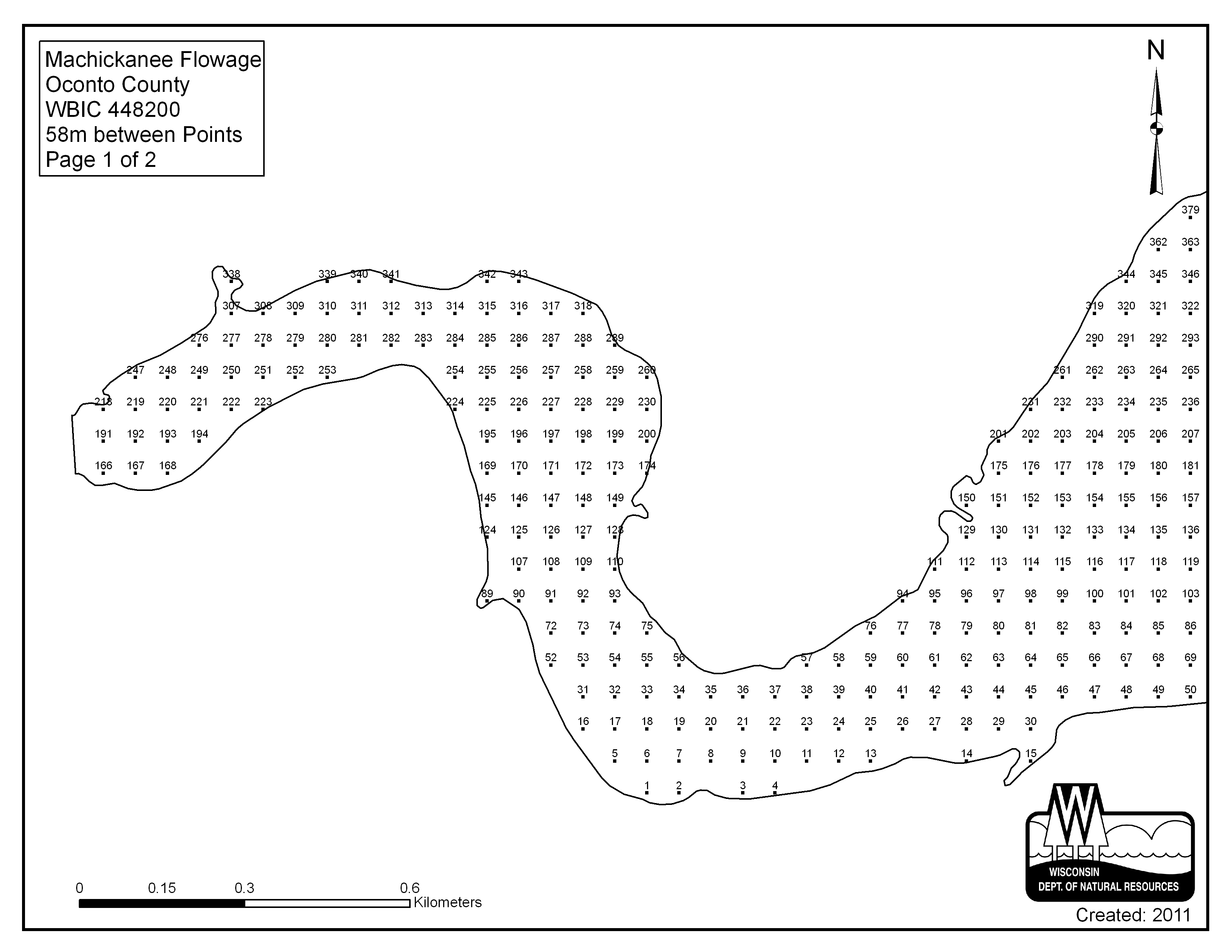 Machickanee Flowage, Oconto County - Aquatic Plant Sampling Map (1)(58 mpts)