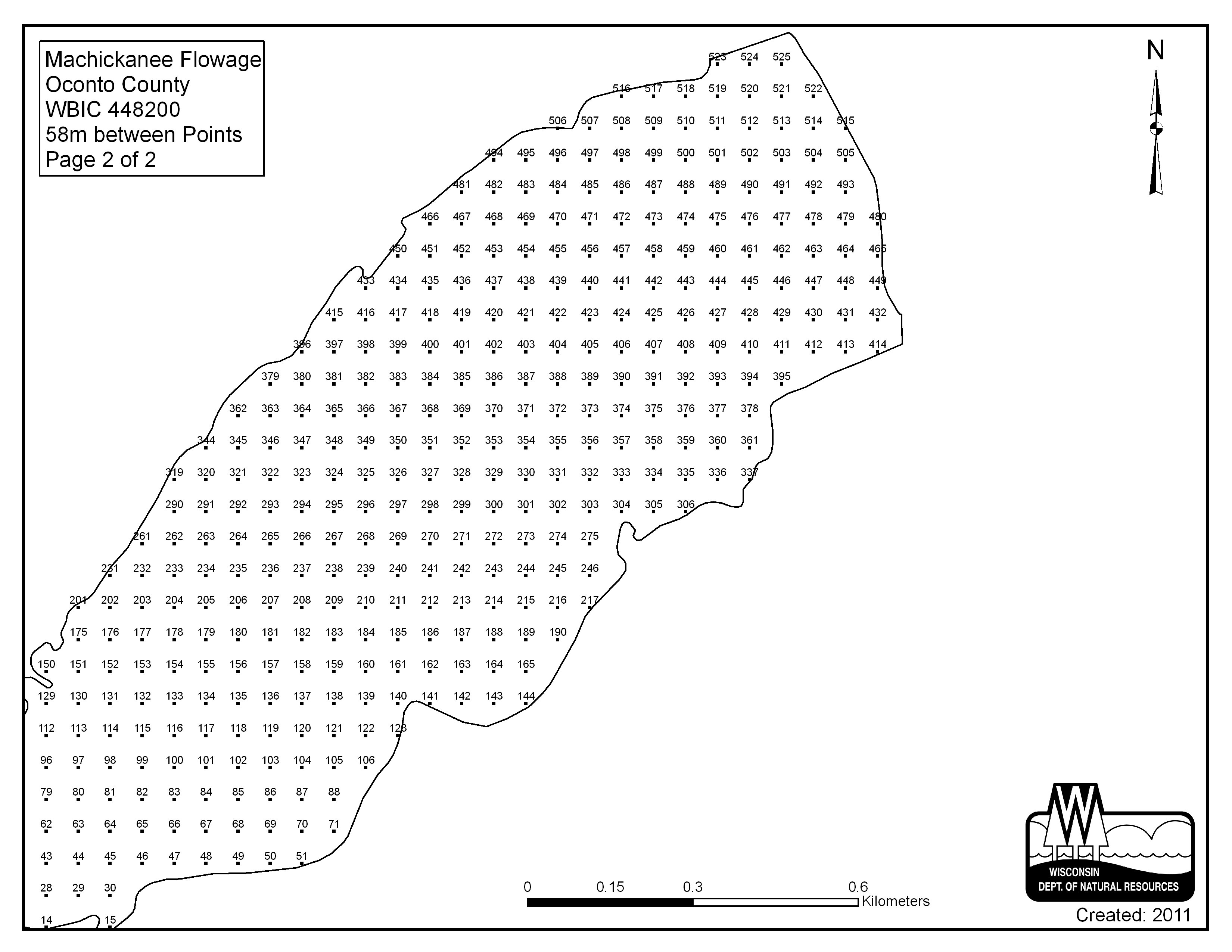 Machickanee Flowage, Oconto County - Aquatic Plant Sampling Map (2)(58 mpts)