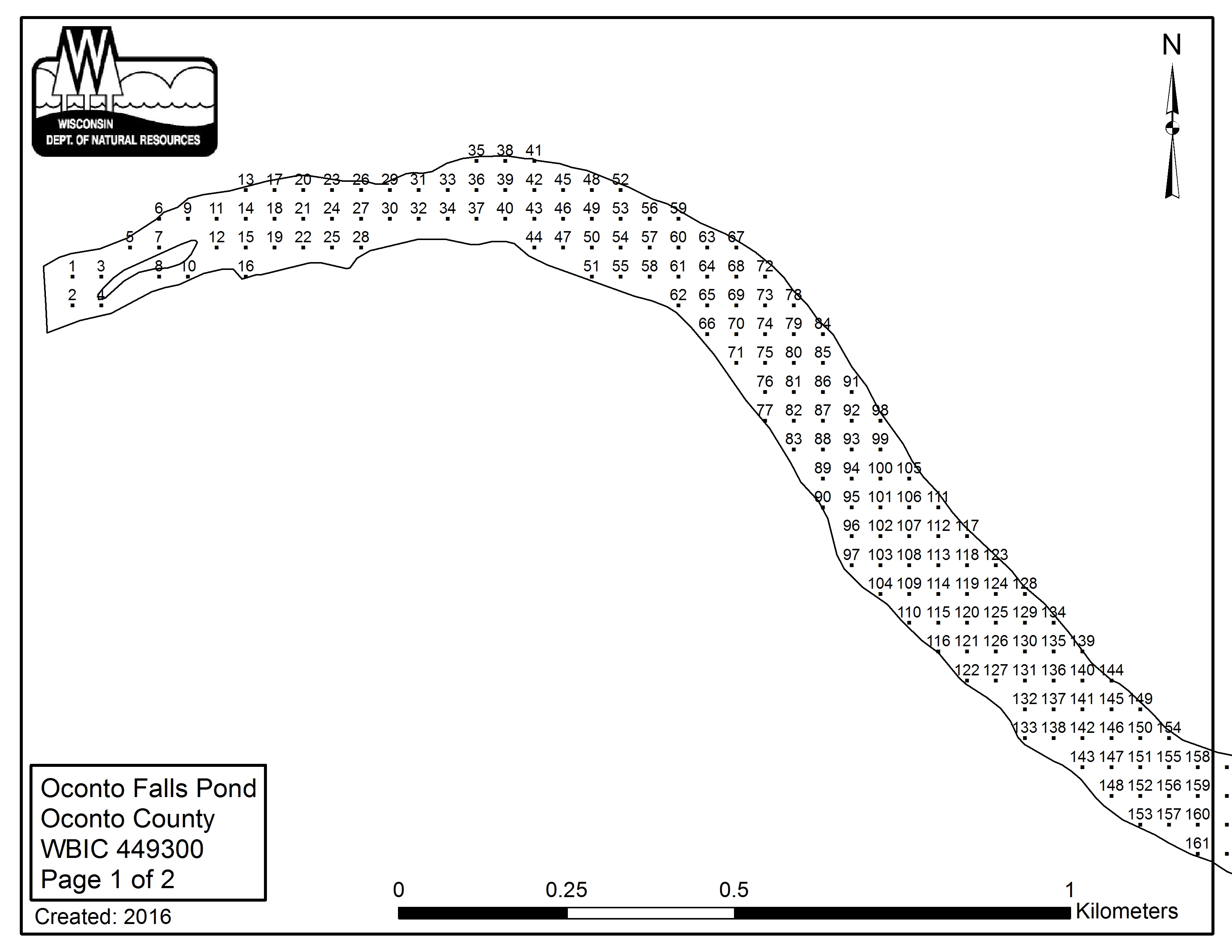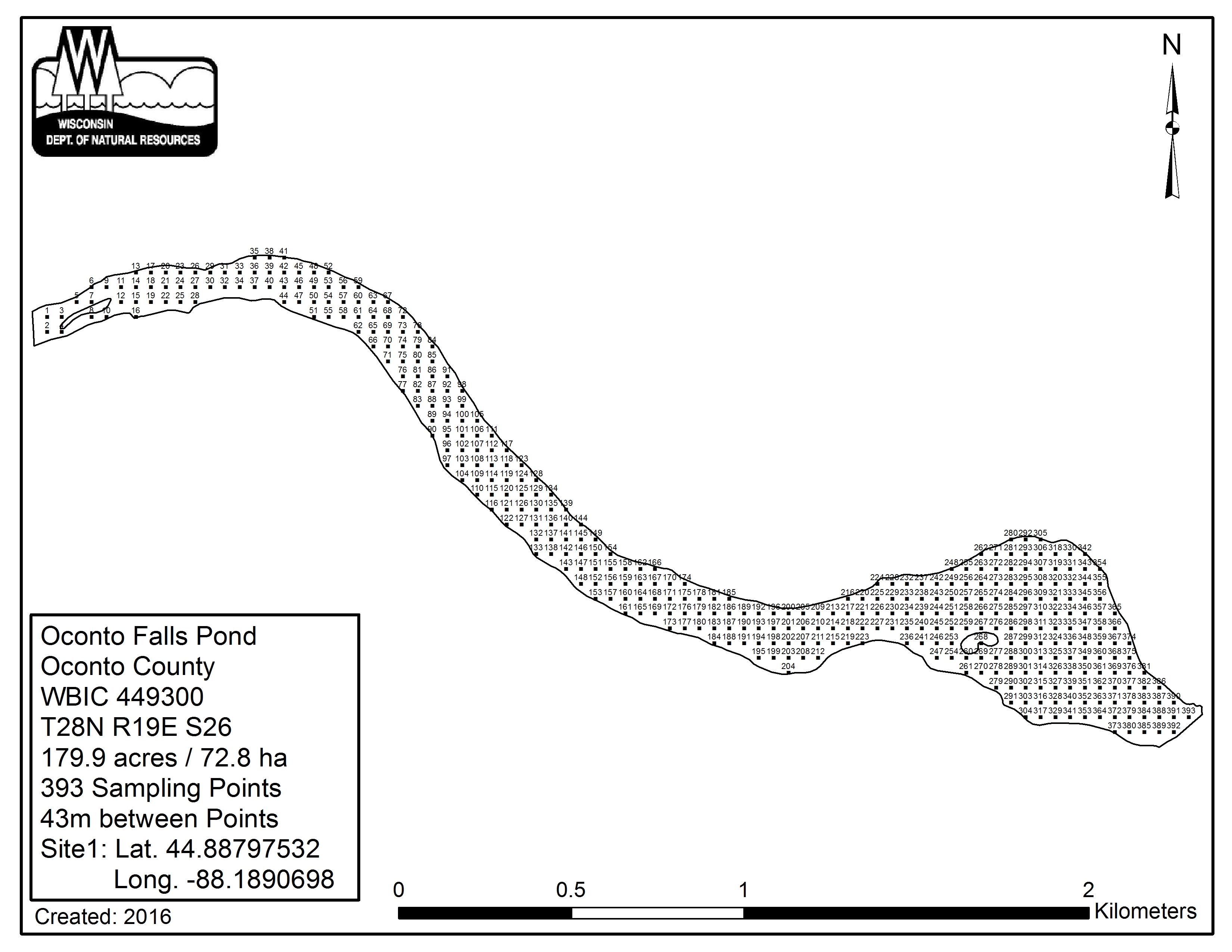 Oconto Falls Pond, Oconto County - Aquatic Plant Sampling Map (1)(43 mpts)