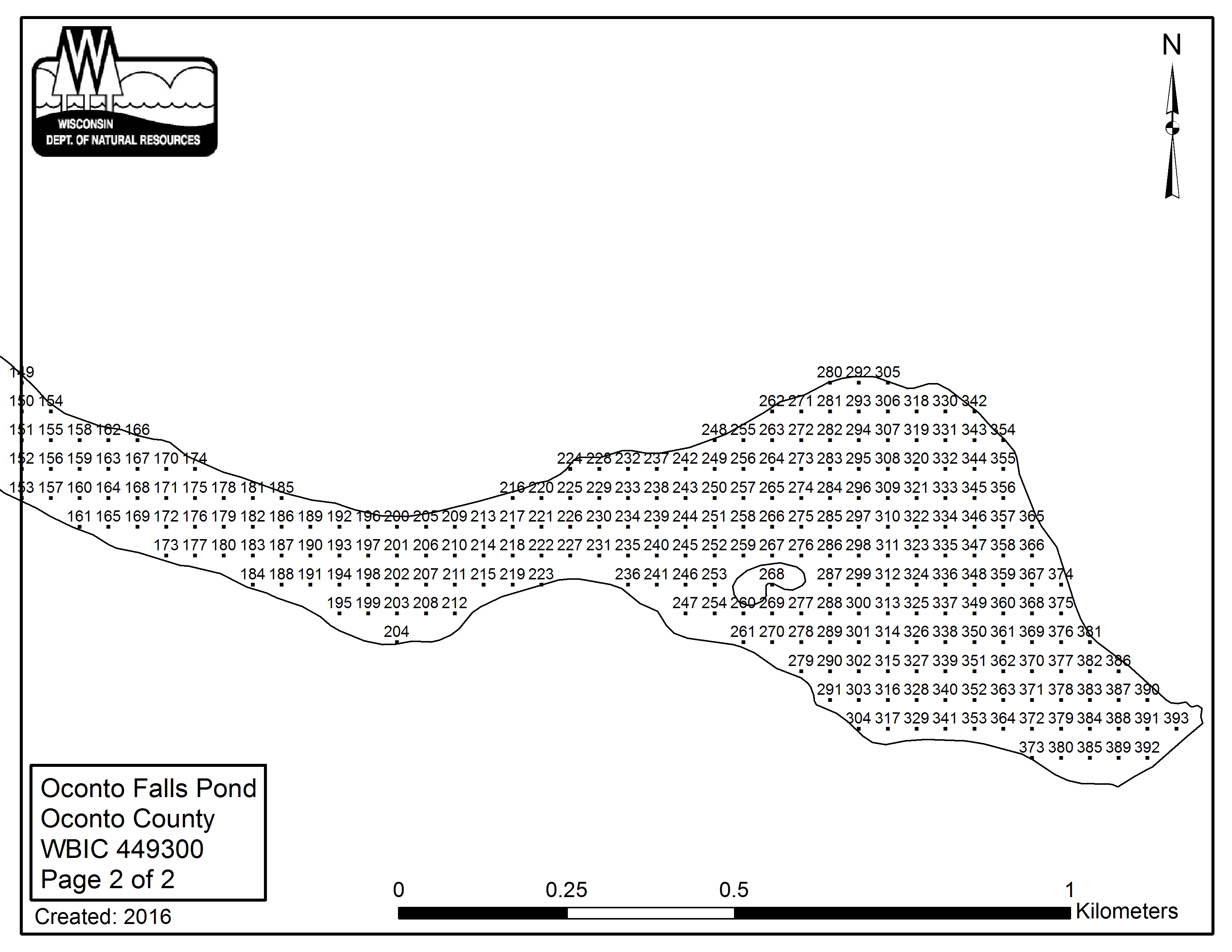 Oconto Falls Pond, Oconto County - Aquatic Plant Sampling Map (2)(43 mpts)