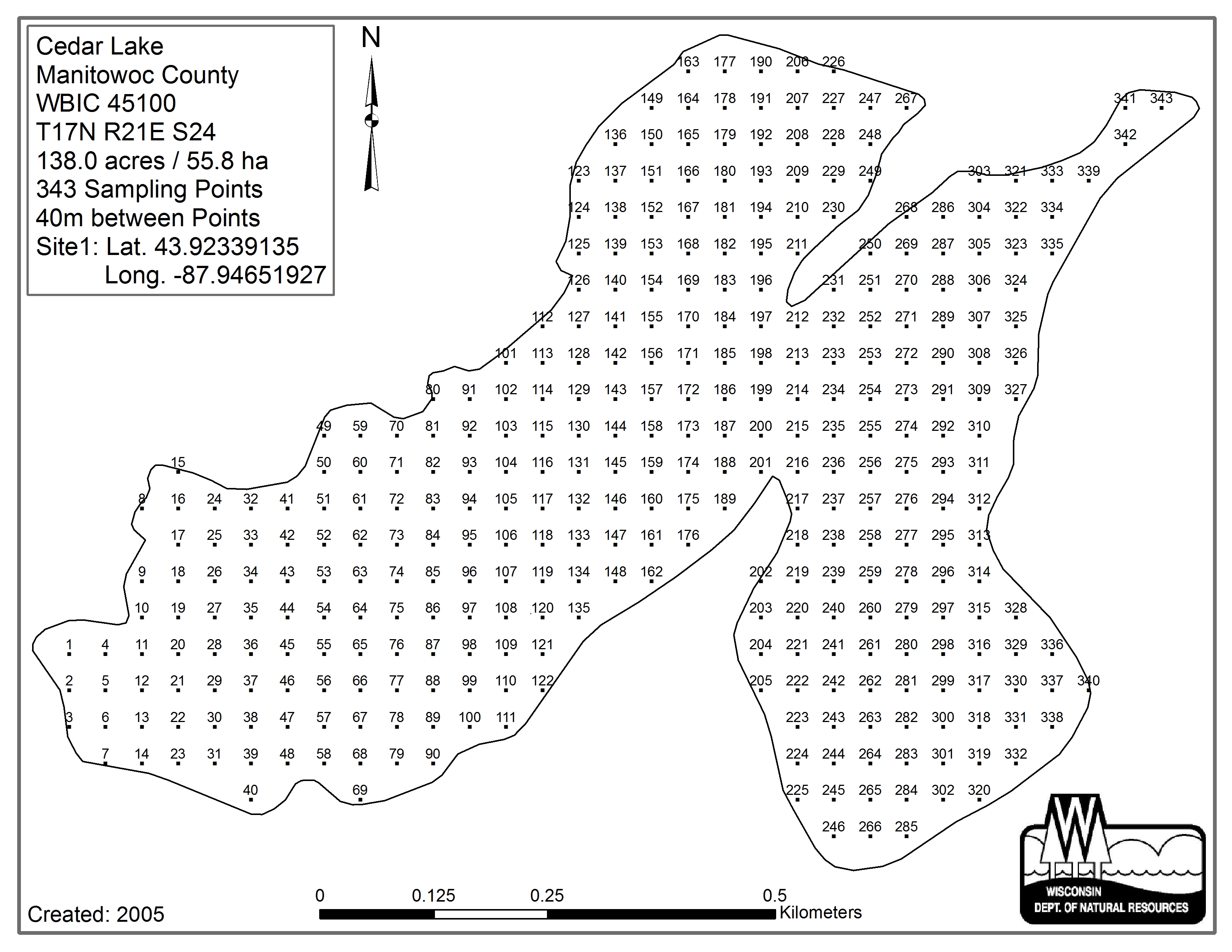 Cedar Lake, Manitowoc County - Aquatic Plant Sampling Map (40 mpts)