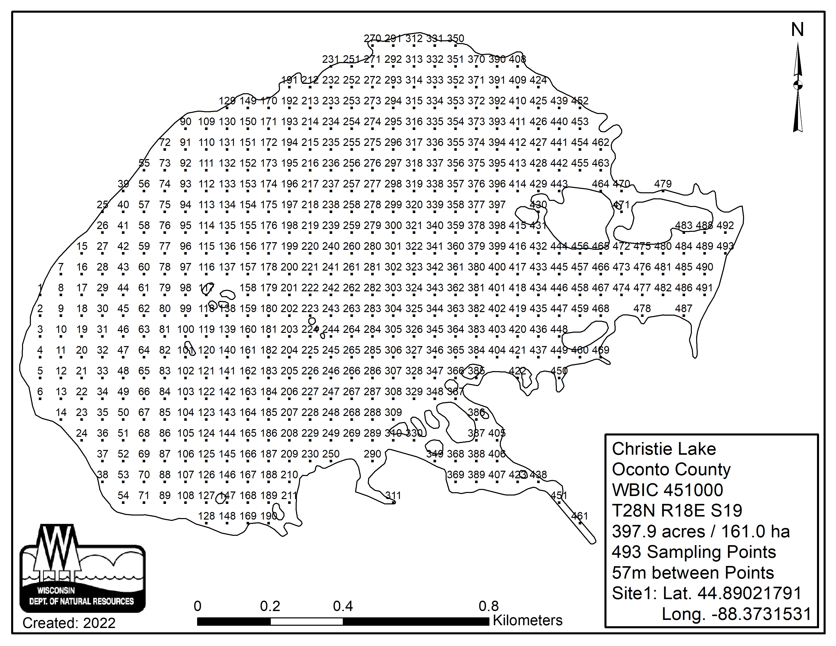 Christie Lake, Oconto County - Aquatic Plant Sampling Map (57 mpts)