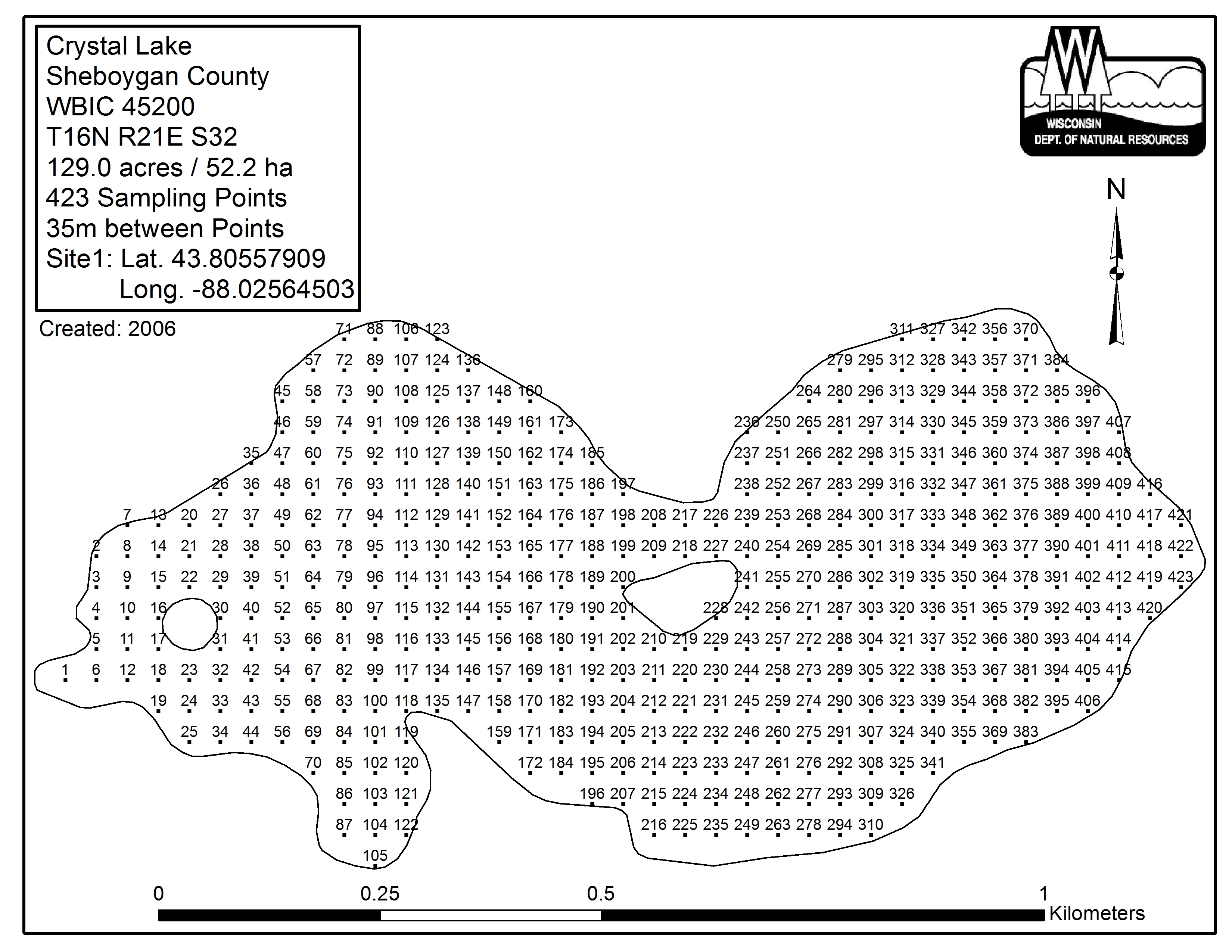 Crystal Lake, Sheboygan County - Aquatic Plant Sampling Map (35 mpts)