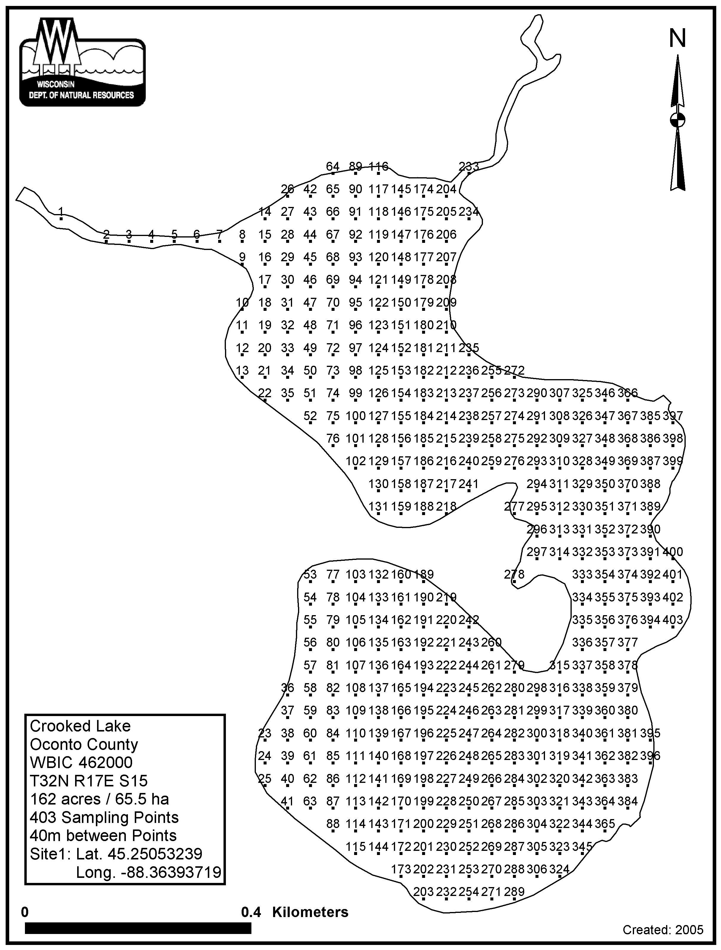 Crooked Lake, Oconto County - Aquatic Plant Sampling Map (40 mpts)
